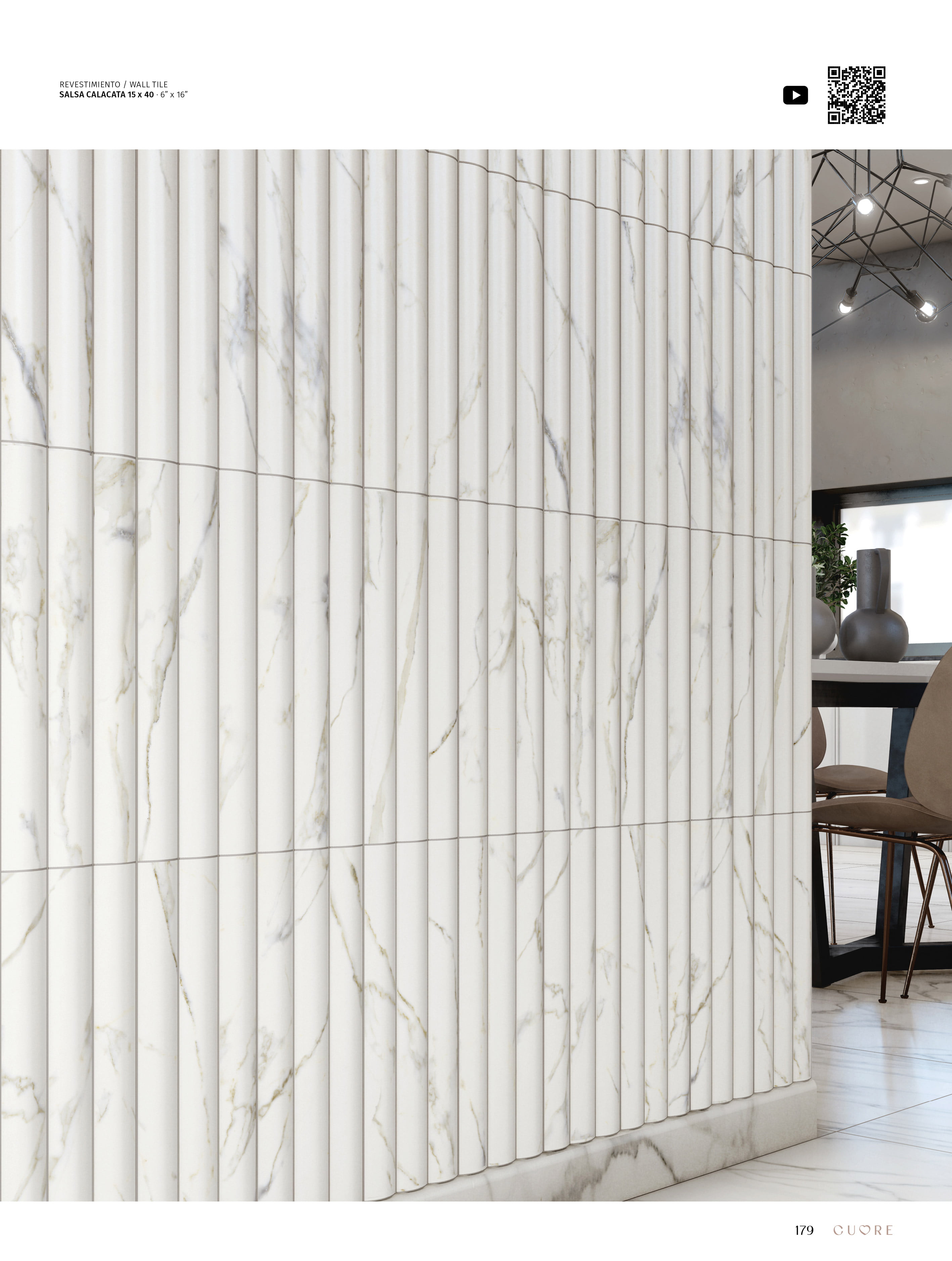 Salsa, a volumetric ceramic tile that takes ceramic reformulation to the next level with its range of colors and satin finish. Walls with volume where light is diffused in a subtle and serene way.
