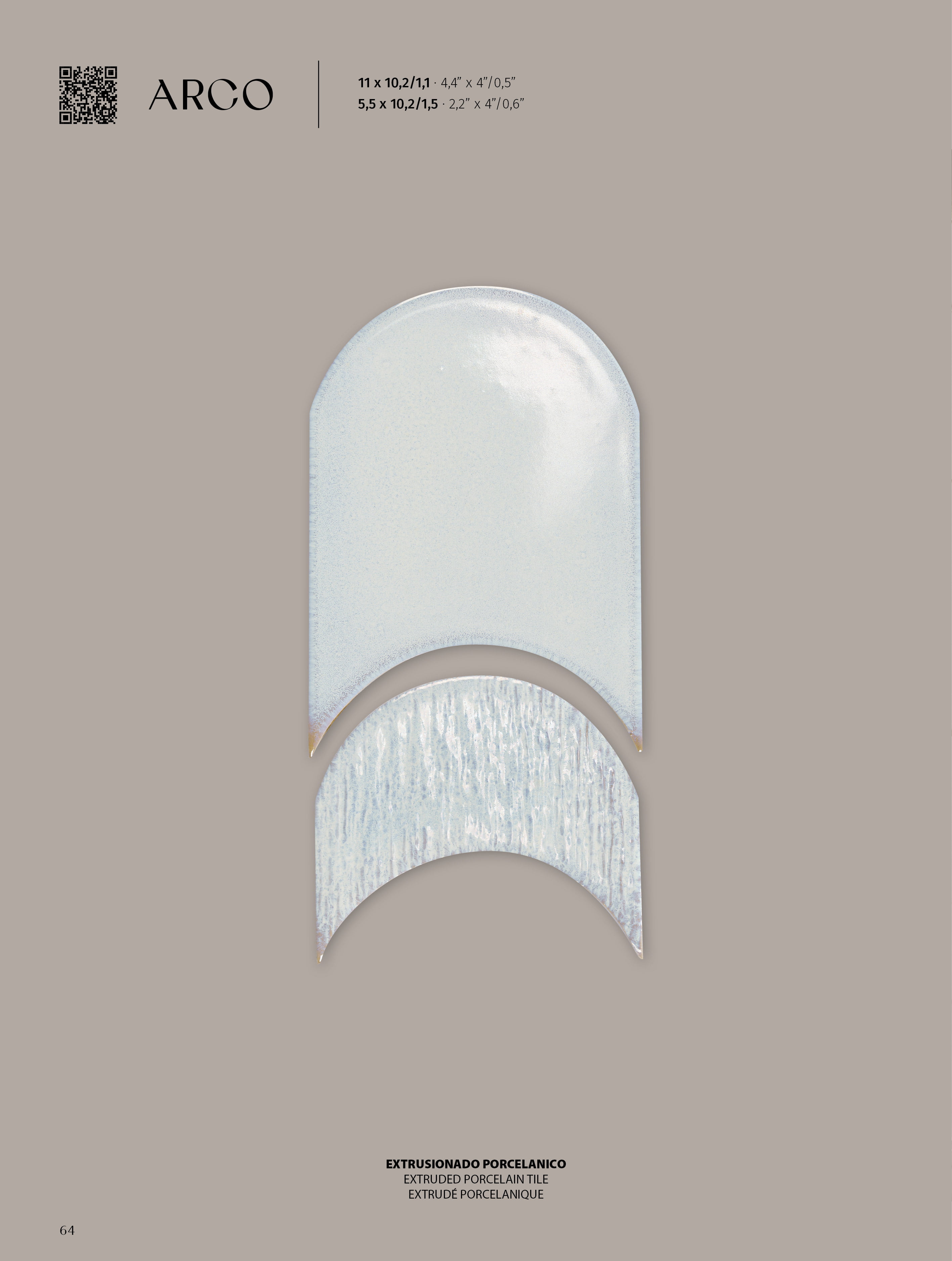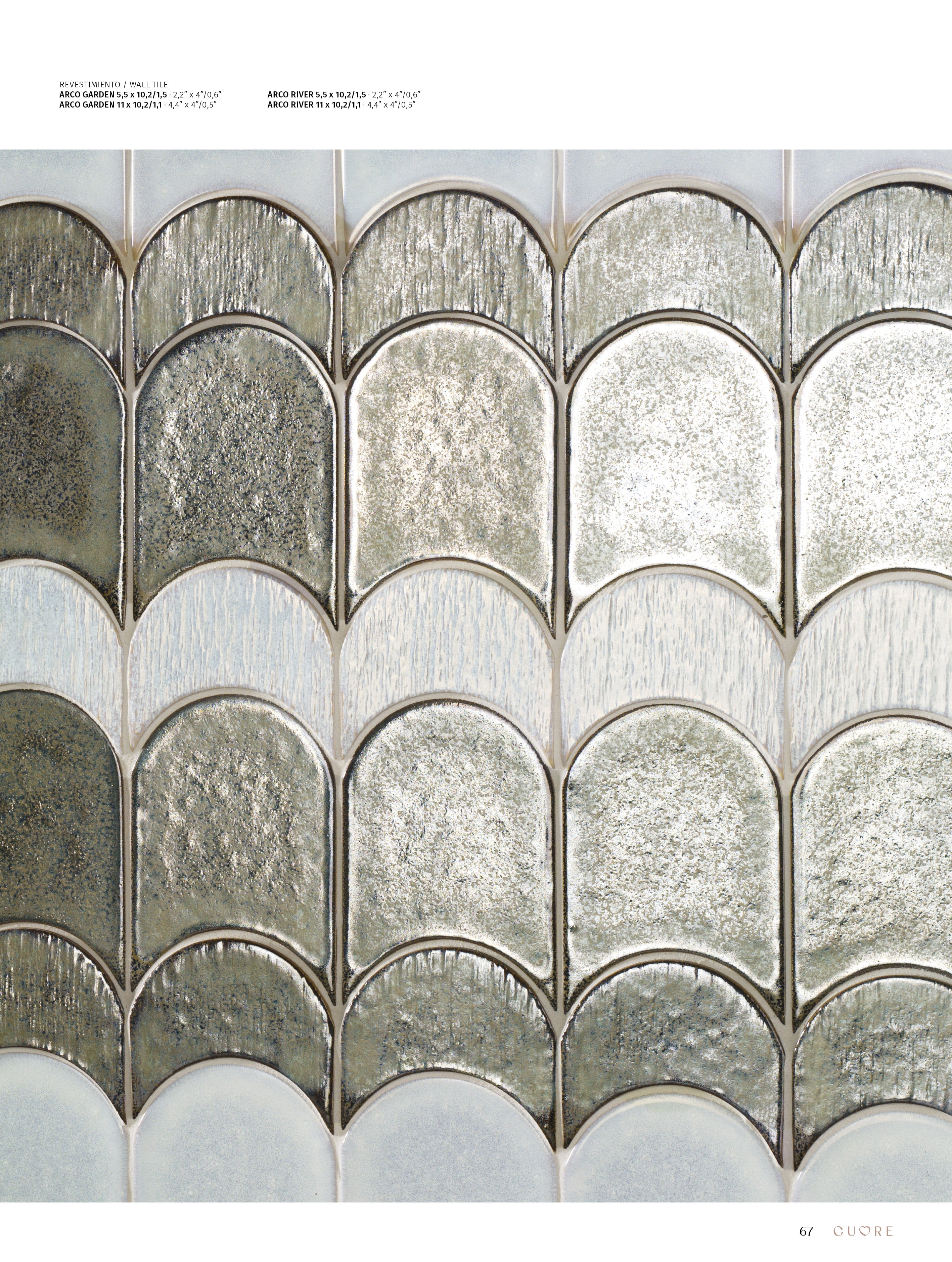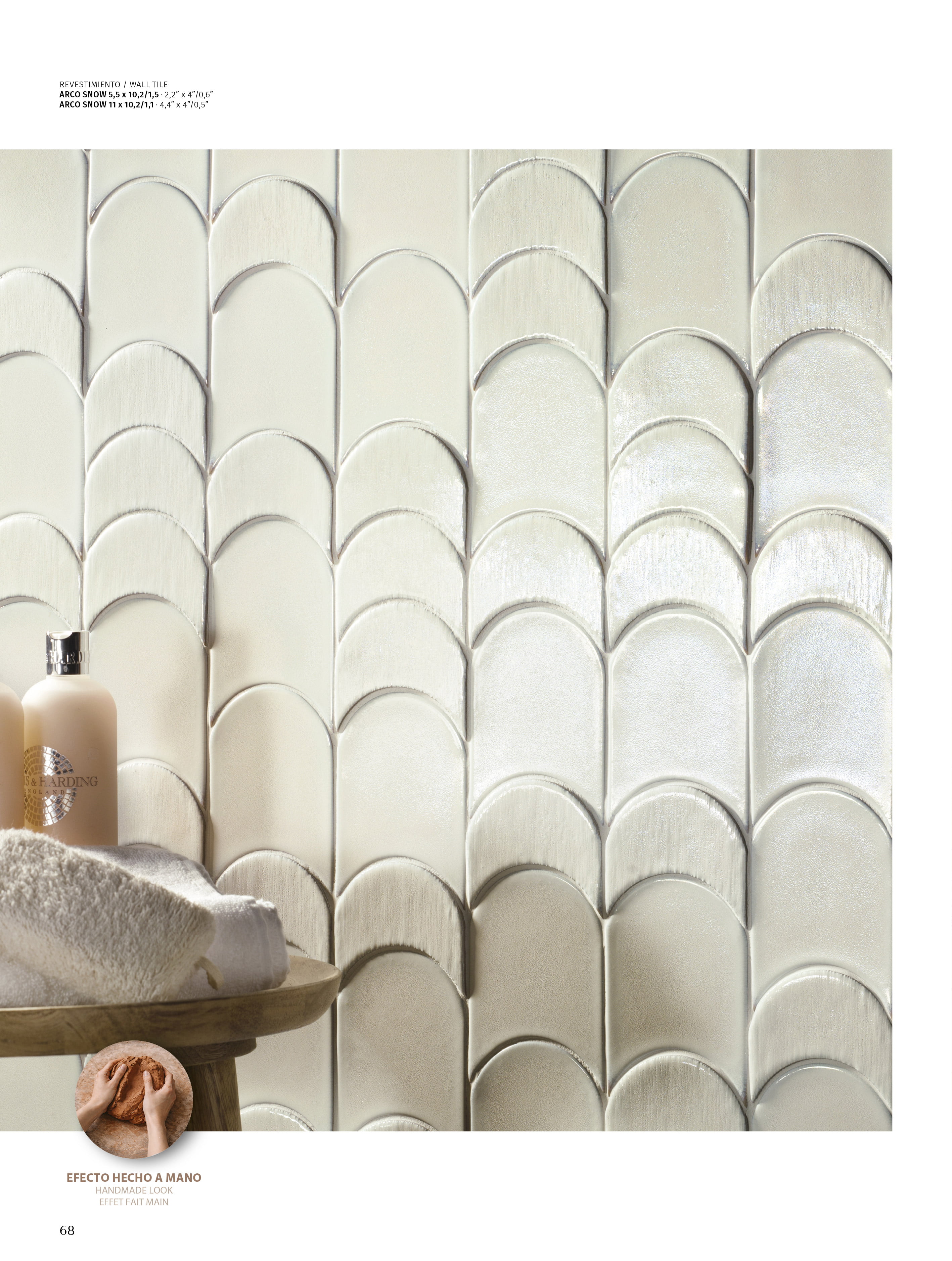 Arco is a revolutionary set of curved volumetric pieces that can be combined with each other or individually. This wall tile combines different textures and shades, in a glossy finish that shows us that ceramic tile does not always have to be square or rectangular and that with its peculiar format it can give life to any room where it is located.
