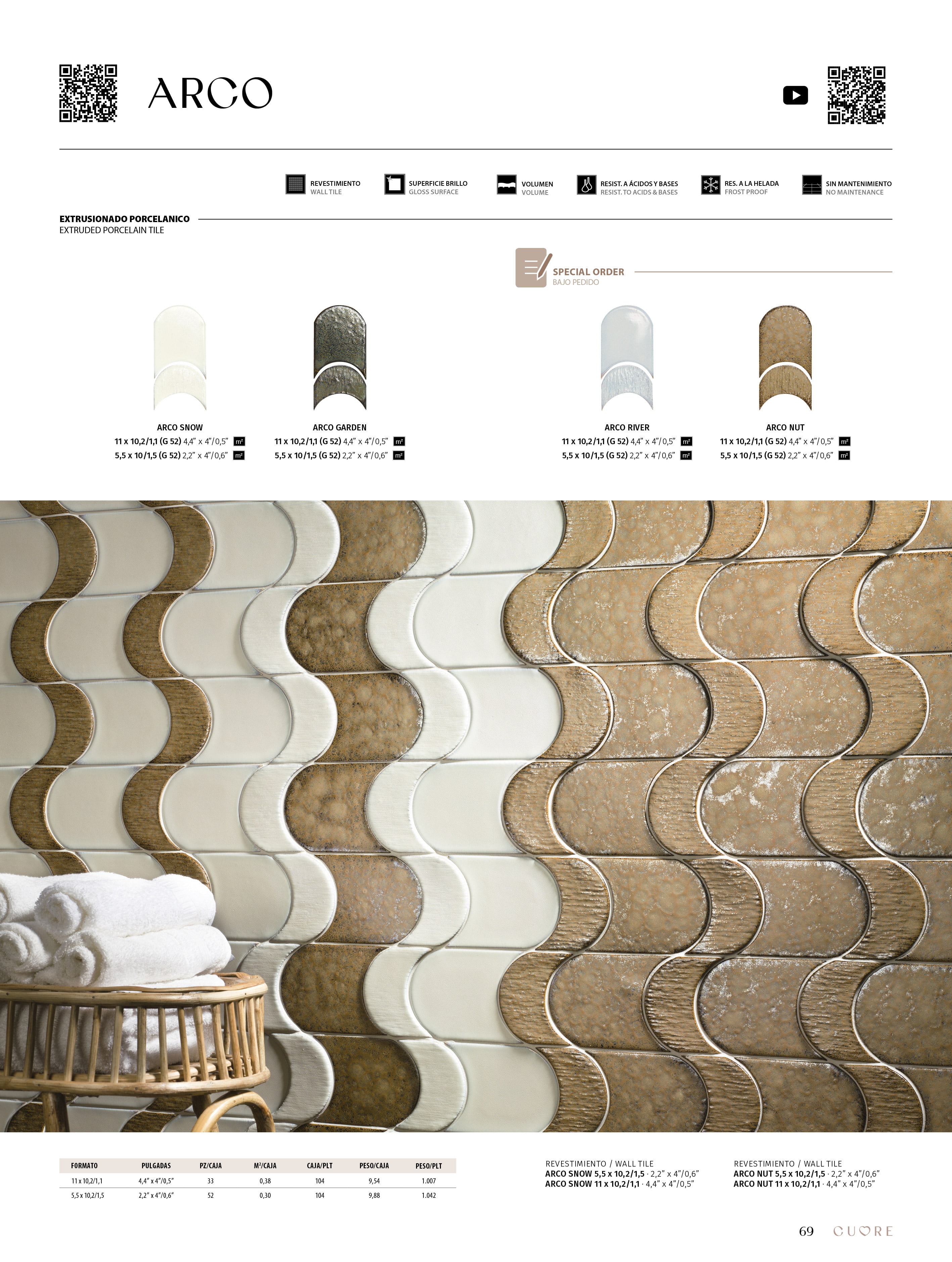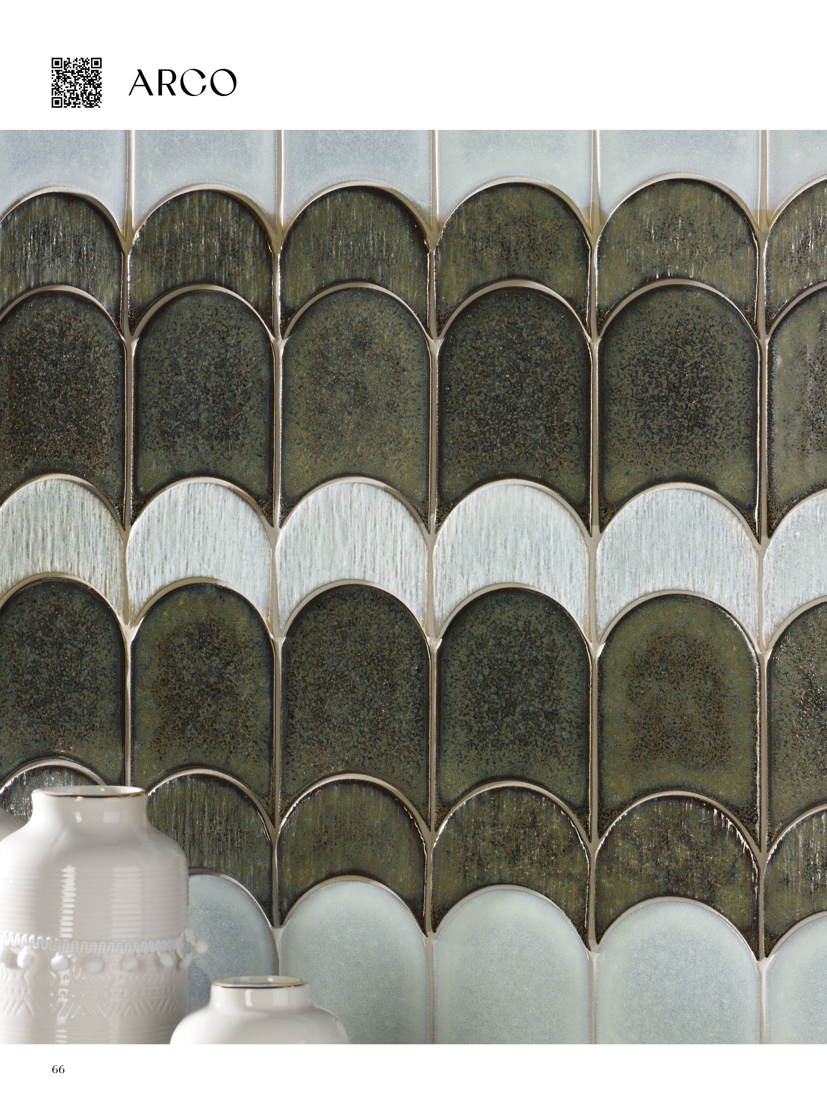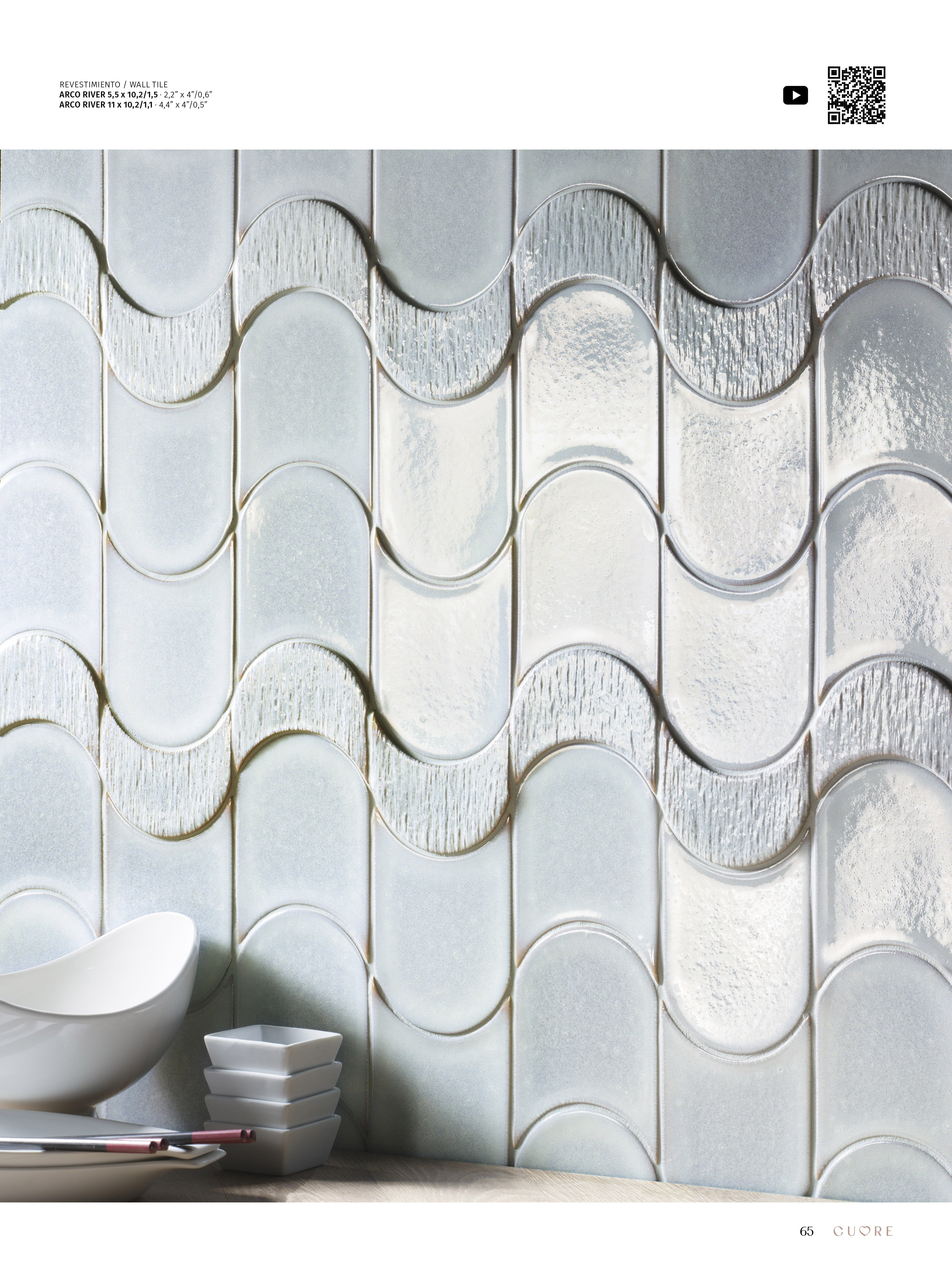 Arco is a revolutionary set of curved volumetric pieces that can be combined with each other or individually. This wall tile combines different textures and shades, in a glossy finish that shows us that ceramic tile does not always have to be square or rectangular and that with its peculiar format it can give life to any room where it is located.