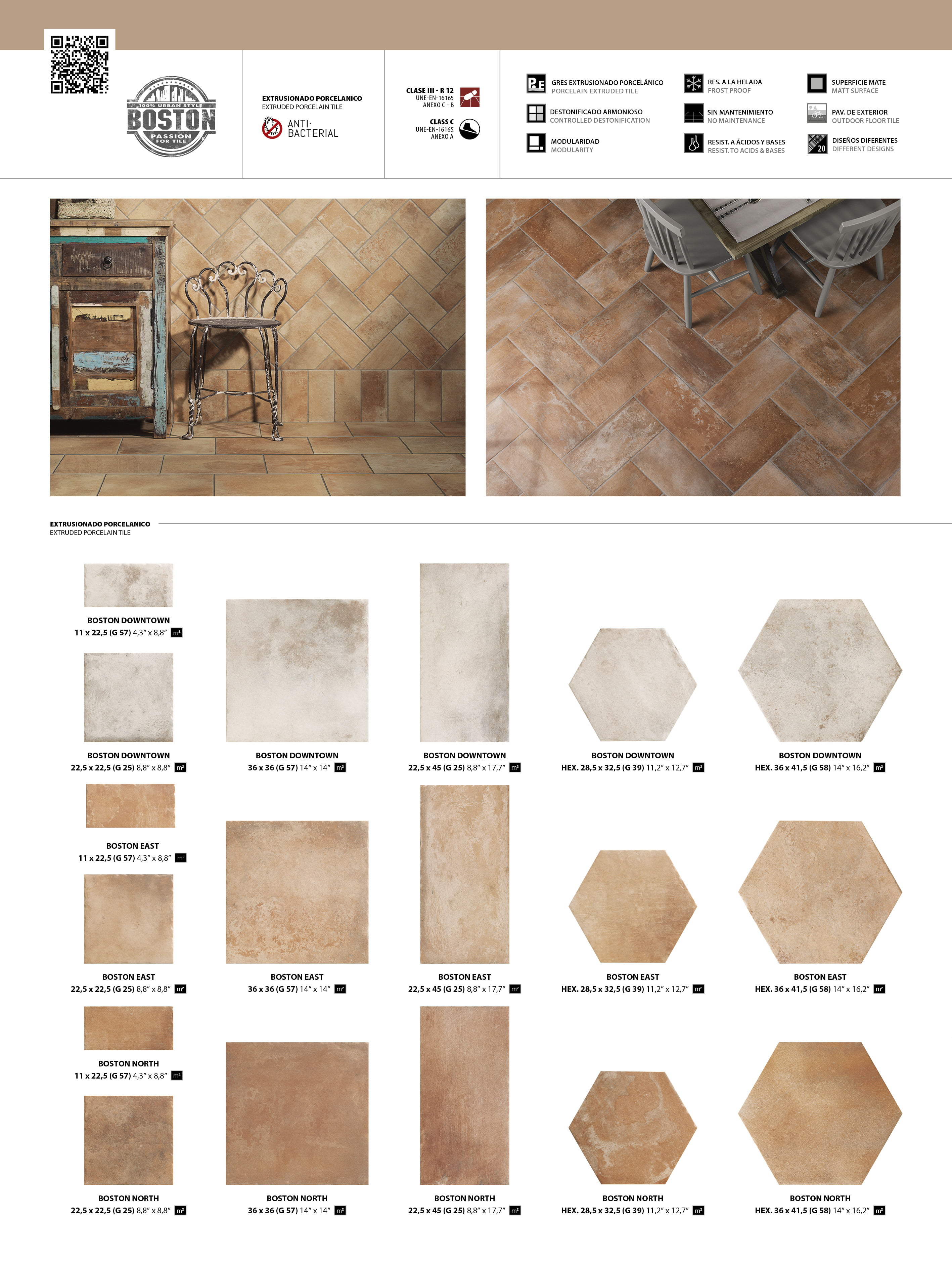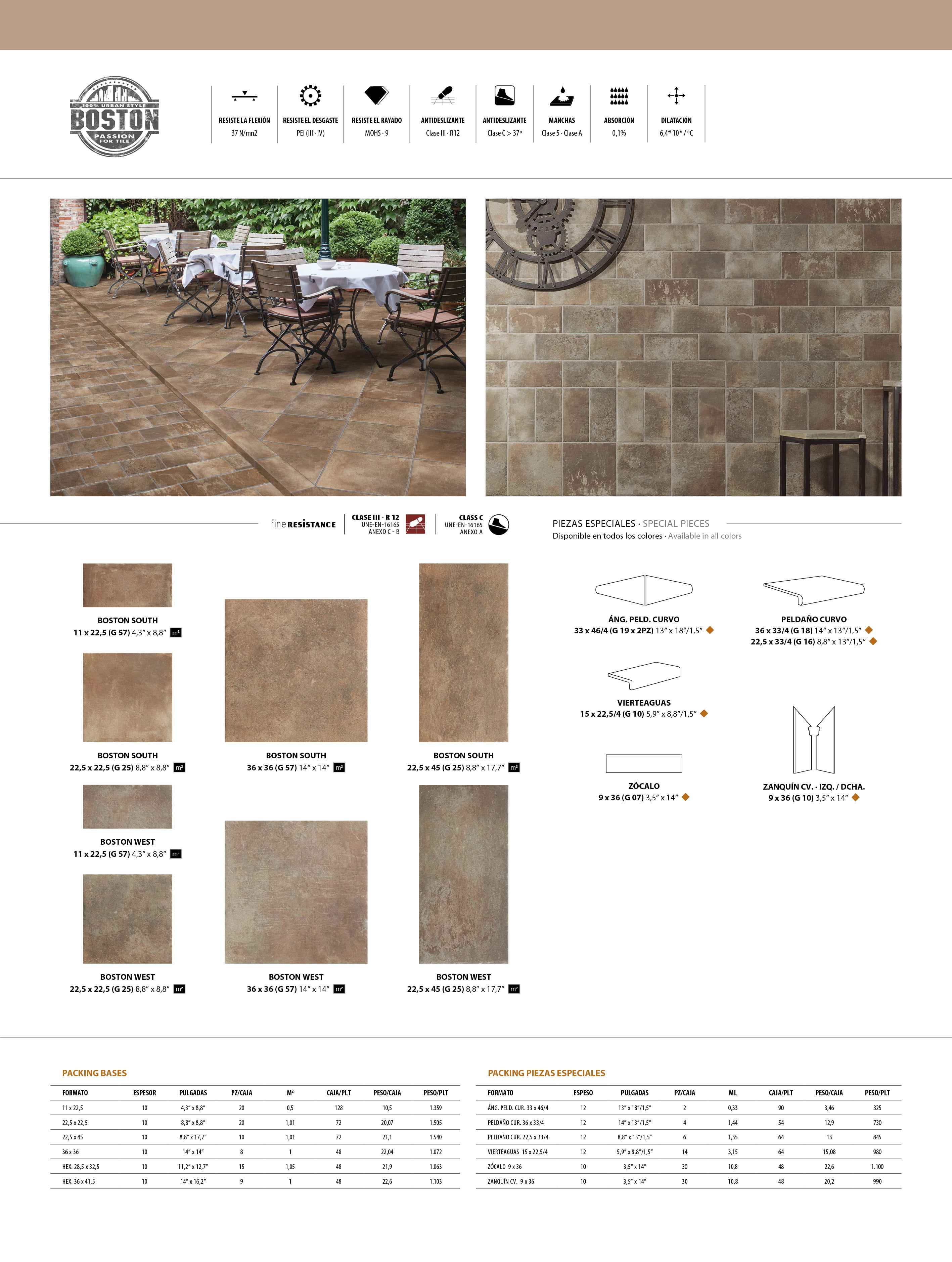 BOSTON NORTH 22,5x22,5 · HEX. 28,5x32,5 · PELDAÑO CURVO BOSTON NORTH 22,5x33/4