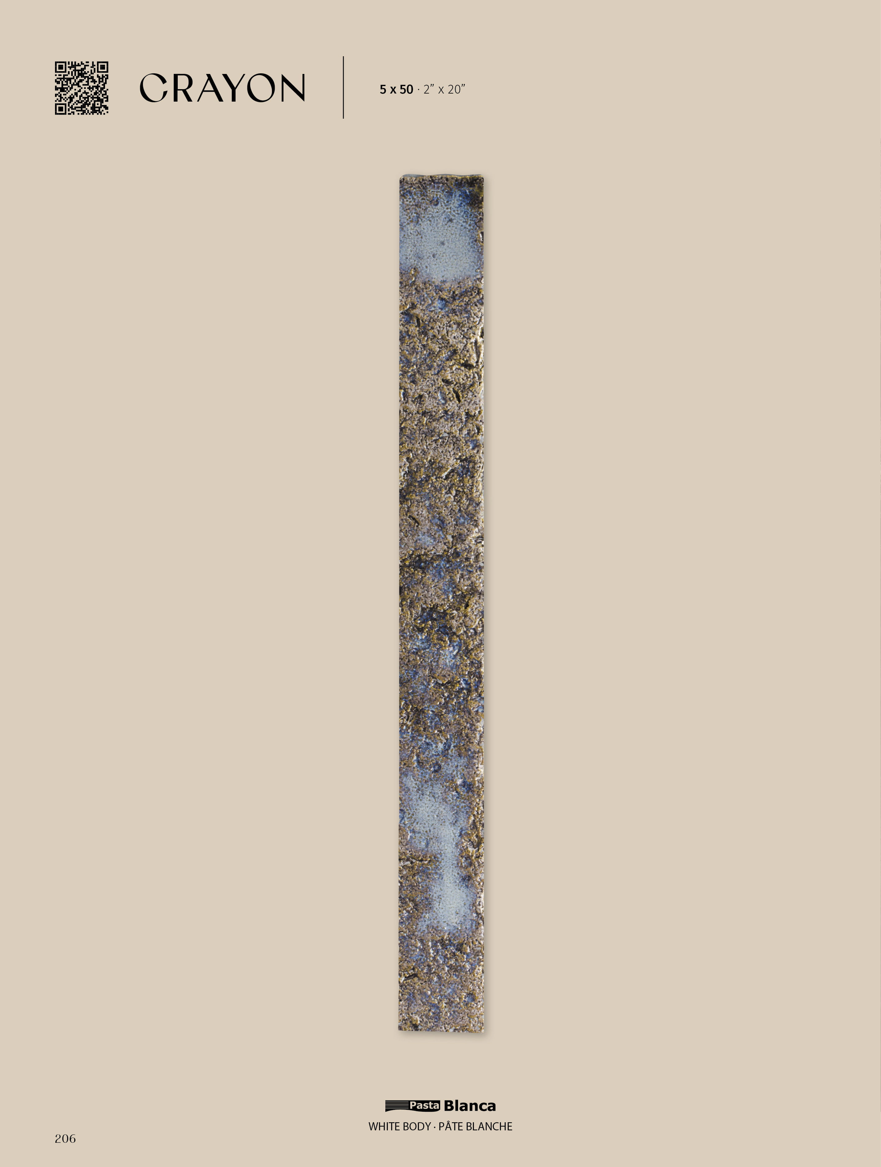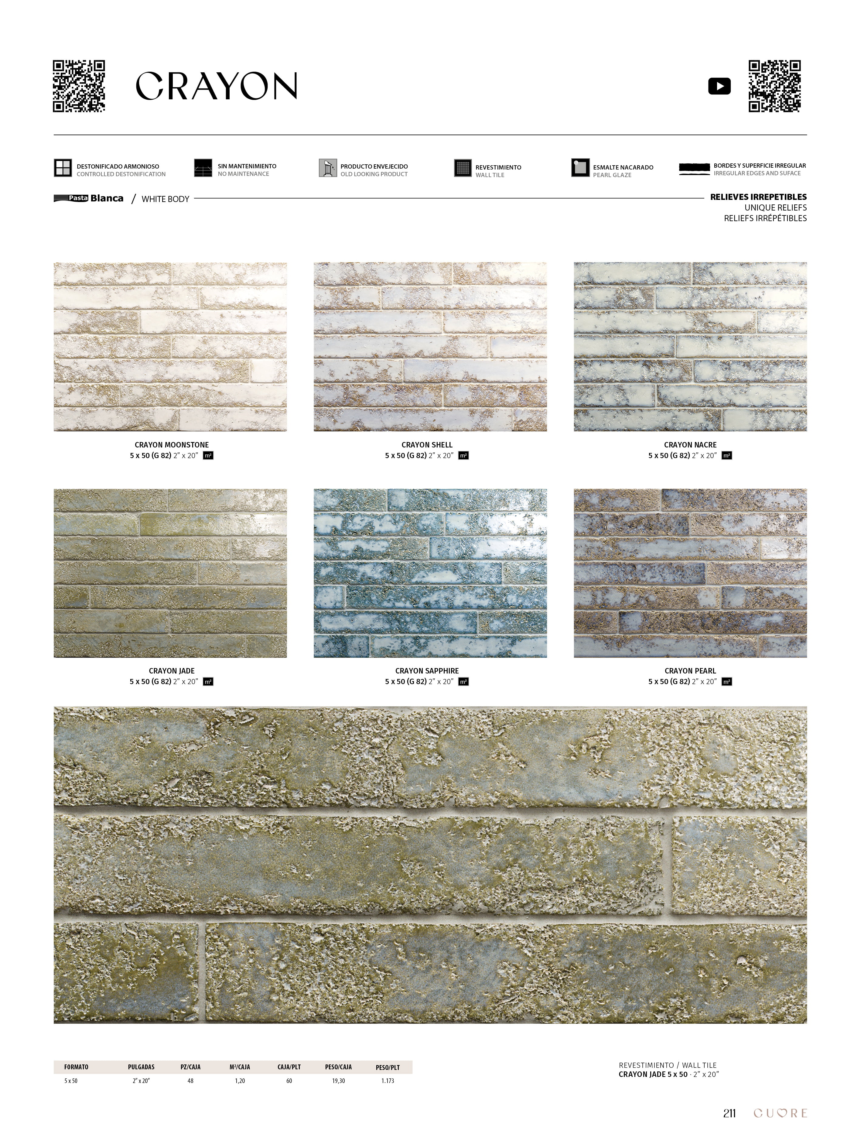 Crayon, where the irregular and marked reliefs emulate the authenticity of nature. It defies conventional standards, taking texture to a new level of expression.