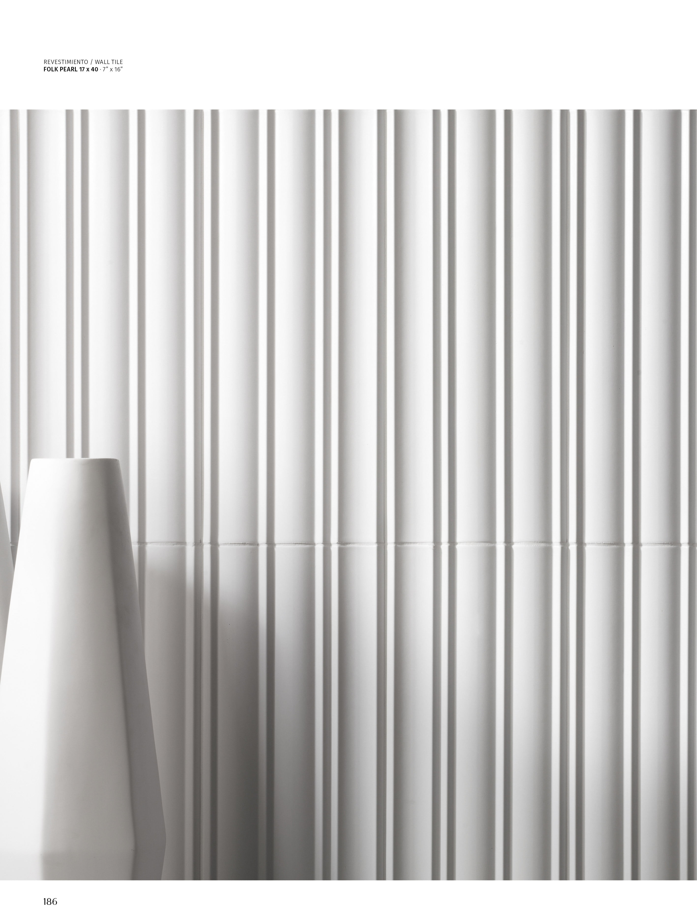 Elegance, relief and sophistication are the characteristics that define the Folk series. This volumetric extruded porcelain tile with gloss finish and pearly tones offers greater customization and creativity when designing any space, helping to create a more unique and personal atmosphere.
