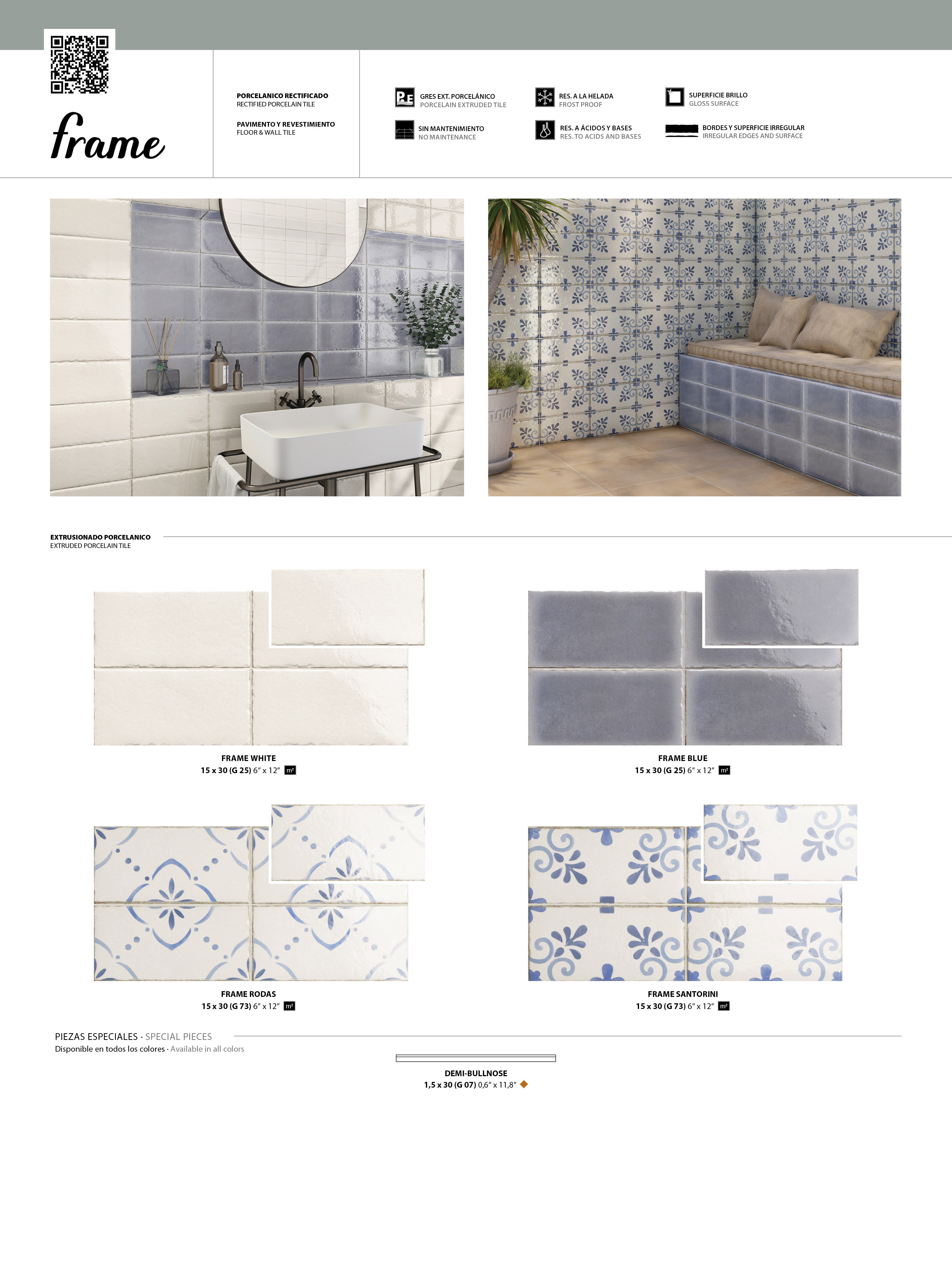 FRAME SANTORINI 15x30 · 6''x12'' · FRAME BLUE 15x30 · 6''x12''ARGILE VERONA 45x45 · 17,7''x17,7''
