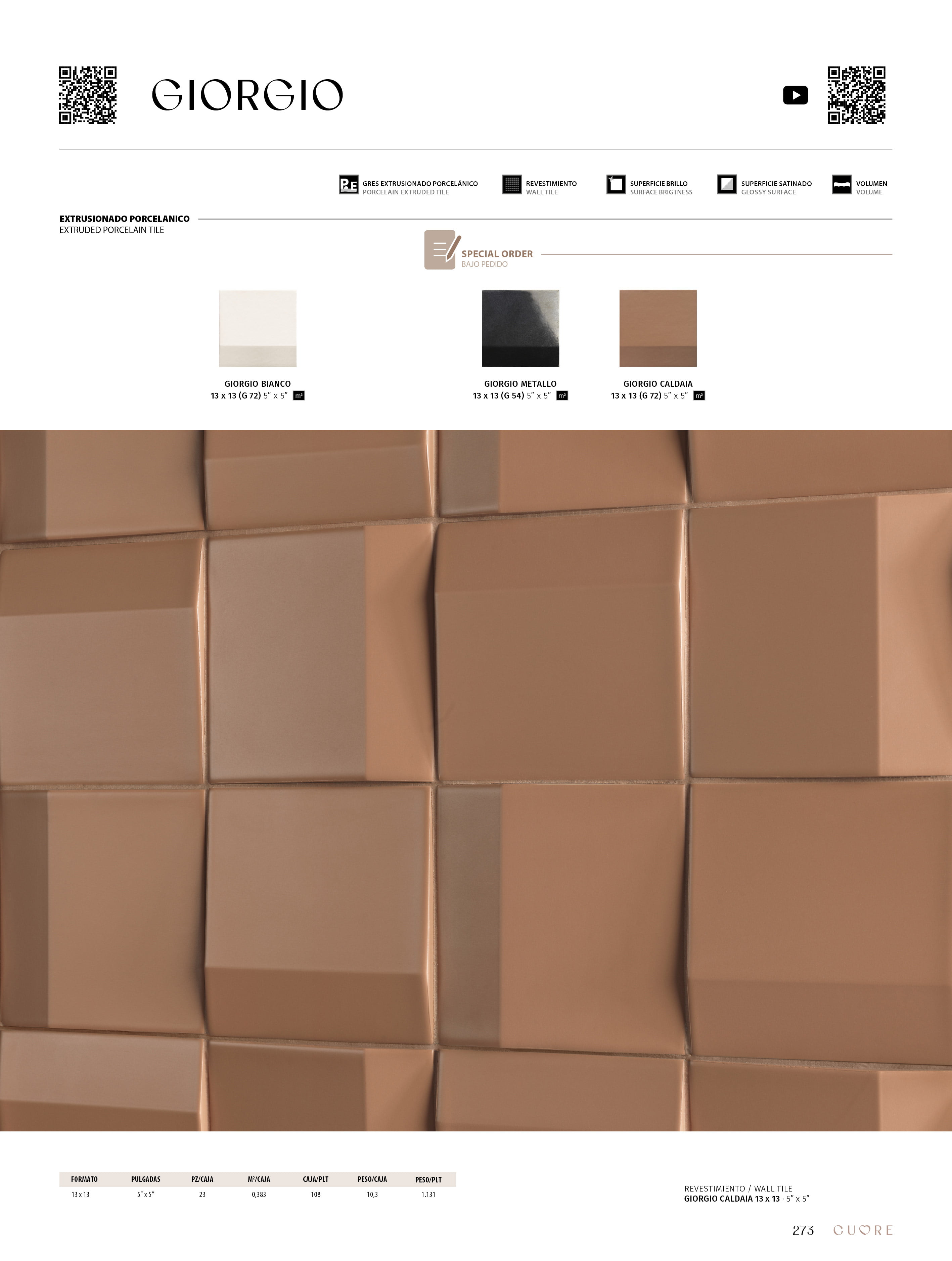 Creativity and elegance in decoration are essential. Contribute to the beauty and personality of the Giorgio D’Autore series with its 5"x5" format, an extruded porcelain tile that presents a sophisticated and exclusive volume in a natural finish.