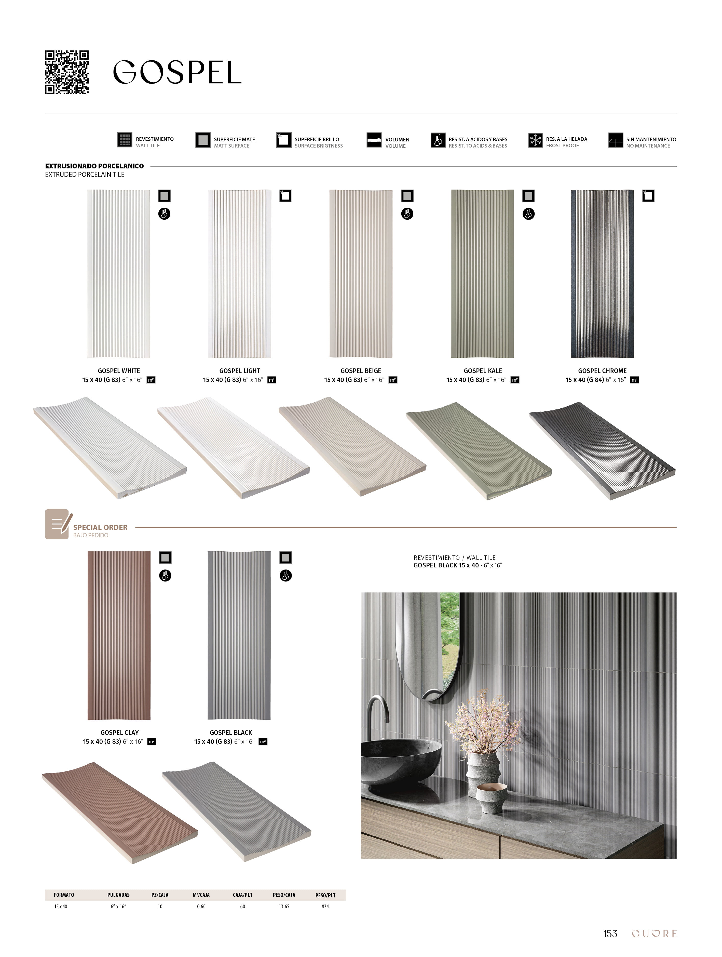 GOSPEL is a collection that celebrates the beauty of simple forms and the depth of texture. In 15x40 format, each piece offers a refined aesthetic, where elegance lies in subtlety. A collection that speaks the language of serenity and good taste