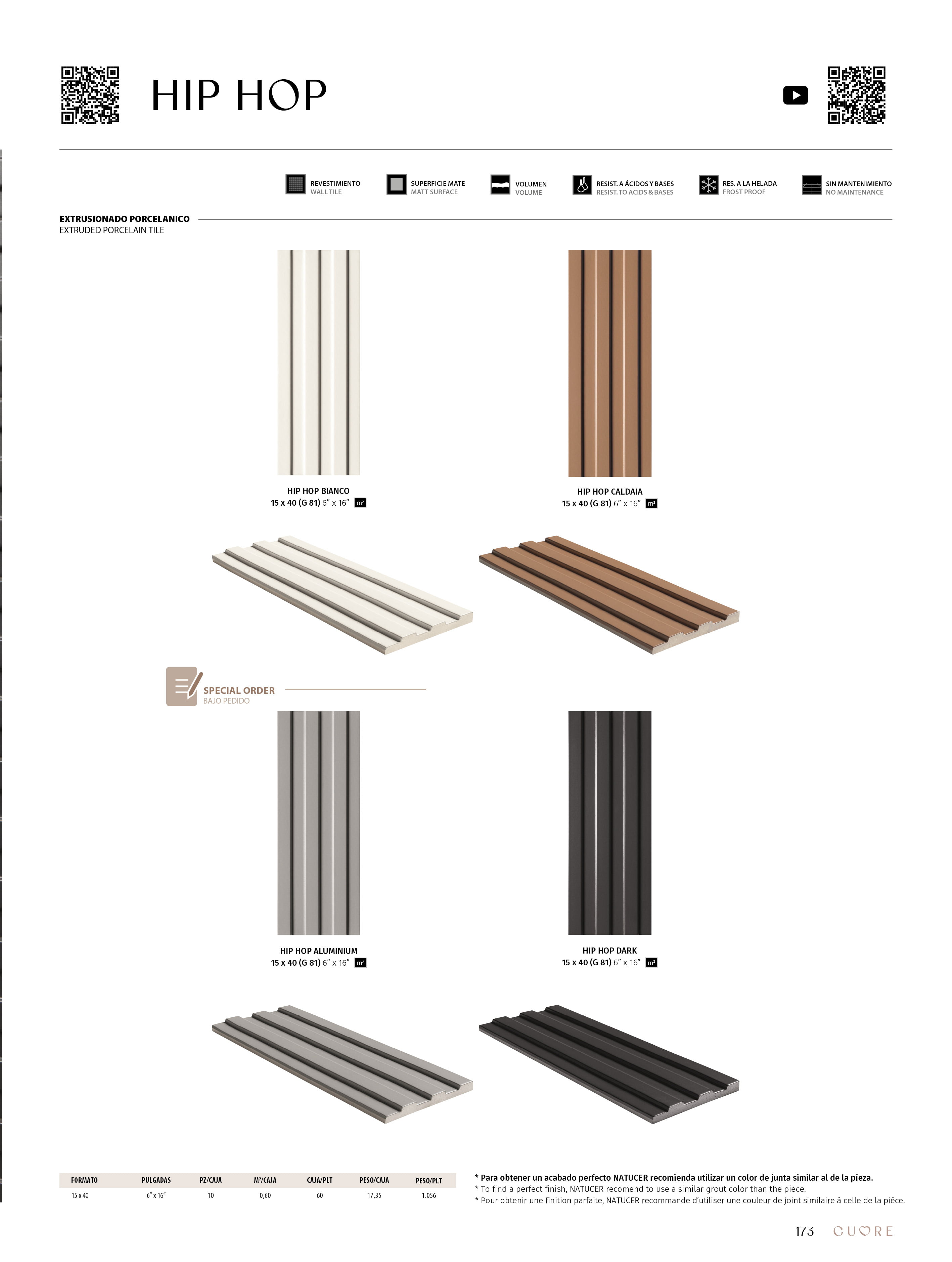 The new Hip Hop extruded porcelain tile series offers multiple aesthetic possibilities thanks to its 3D volume and the variety of neutral tones it presents. Perfect for the creation of three-dimensional ceramic walls that transform according to the light and the angle, turning rooms into simple and sophisticated places for our enjoyment.