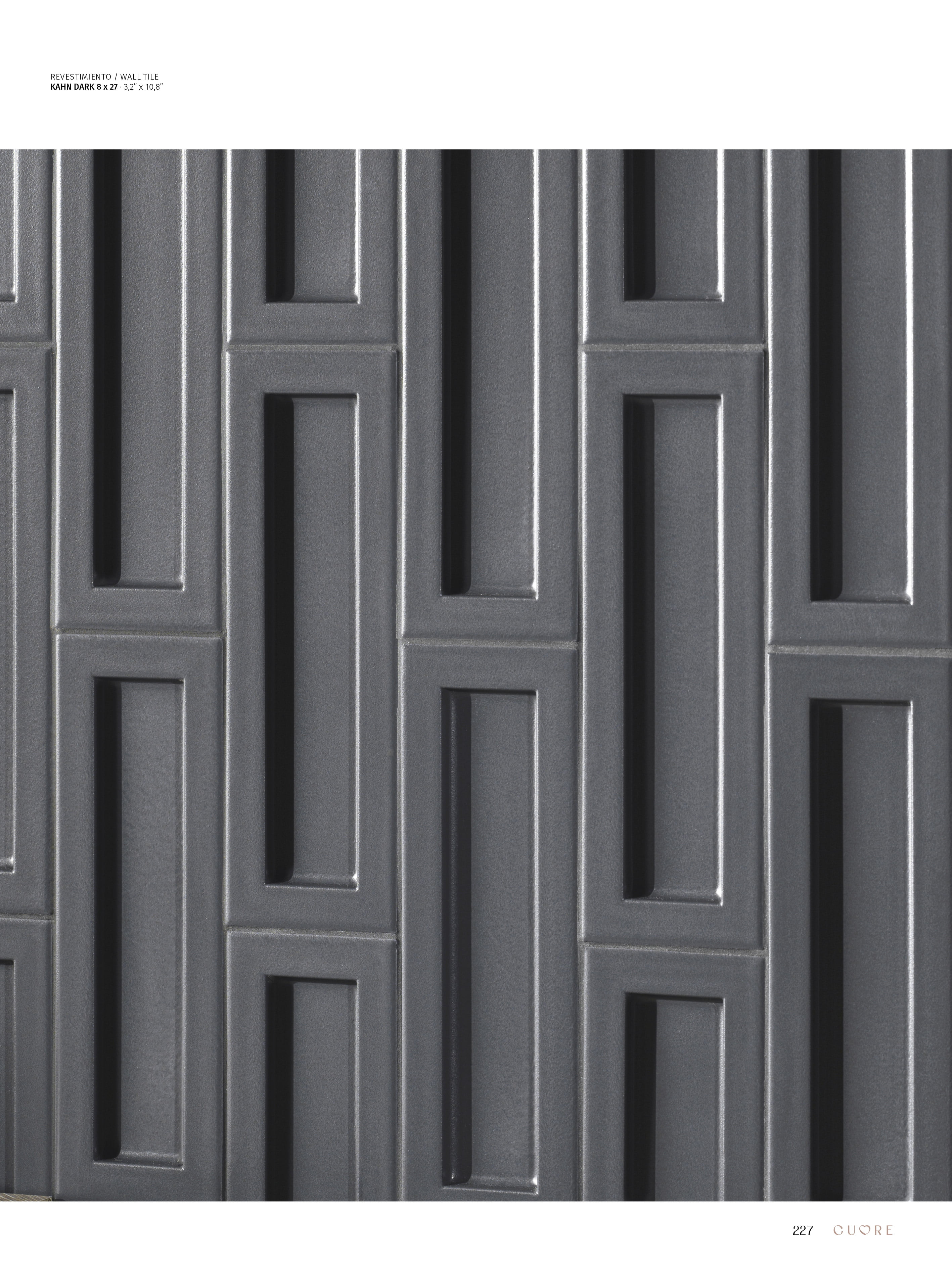 KAHN is a collection that highlights the beauty of simplicity through its precise and elegant design. In an 3”x10,6” format, with a rectangular incision in the center, each piece creates a play of light and shadow that transforms spaces, adding depth and character. Kahn is not just a cladding but an architectural element that invites an enriched visual interpretation—perfect for those seeking design