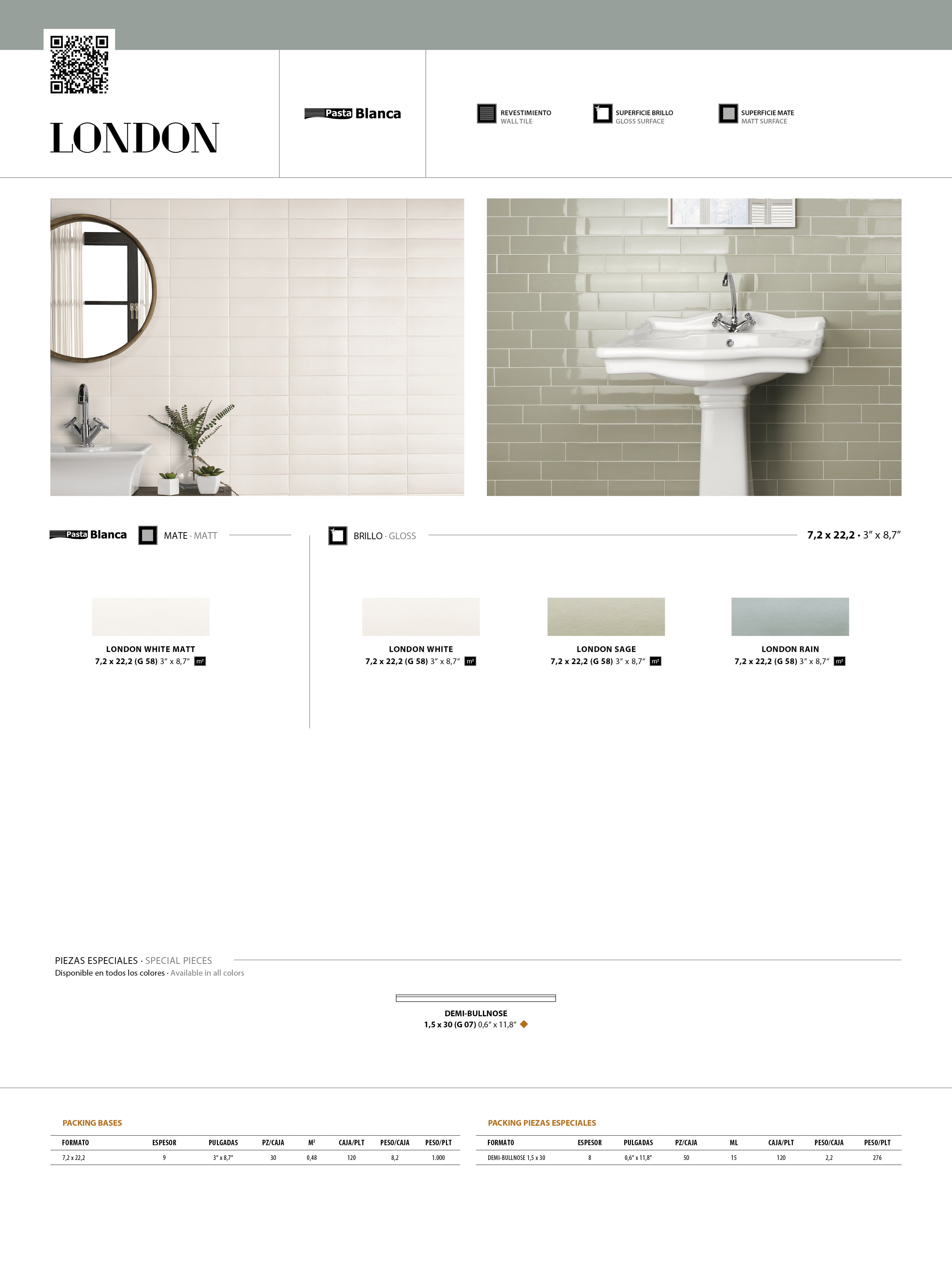 LONDON WHITE MATT 7,2x22,2
