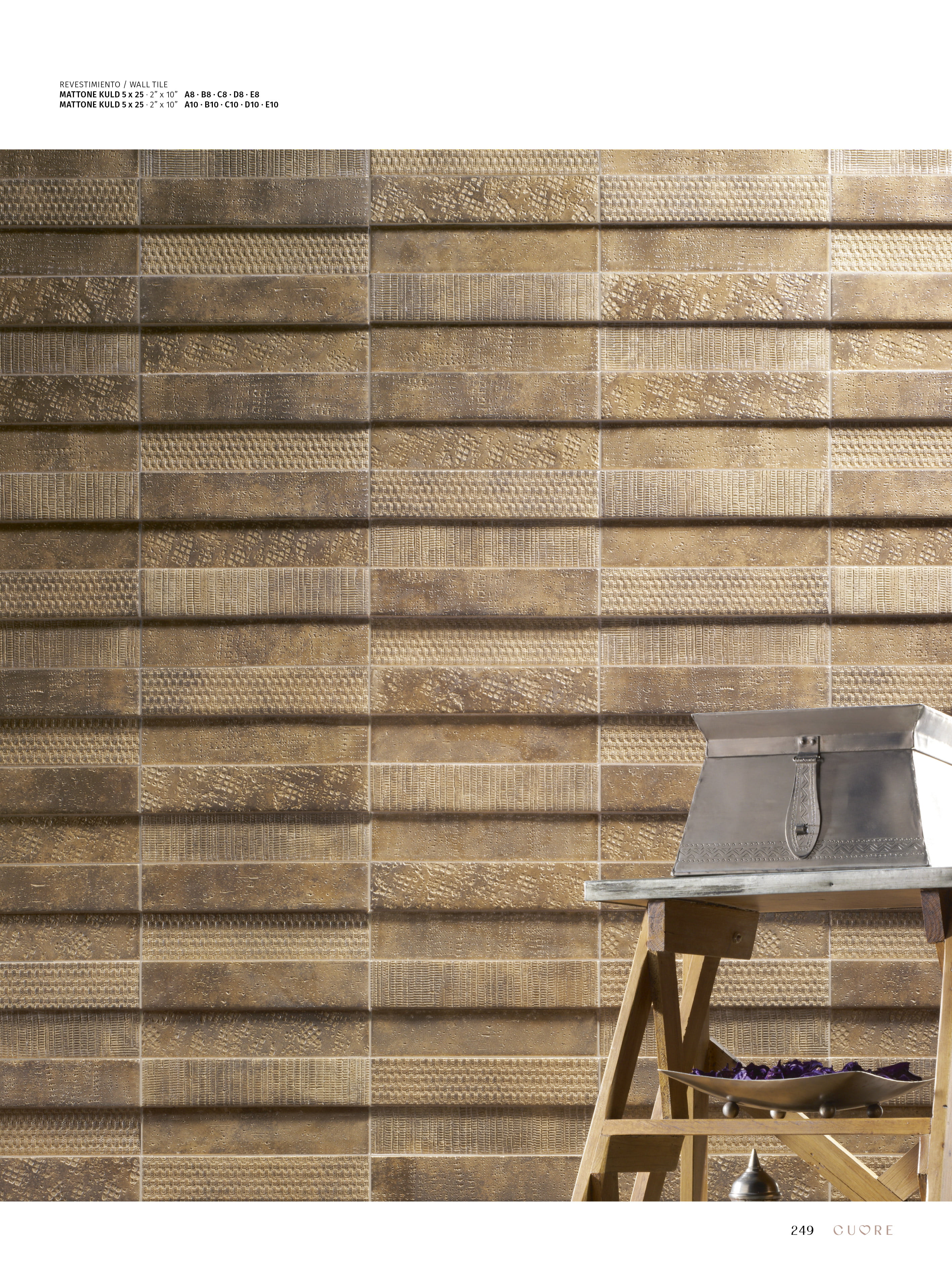Fill with dynamism with a modern rustic touch, every environment with Mattone. Pieces of 2"x10" with 5 different textures, which by combining their 2 thicknesses you can create 3D porcelain stoneware wall coverings for interiors and exteriors.