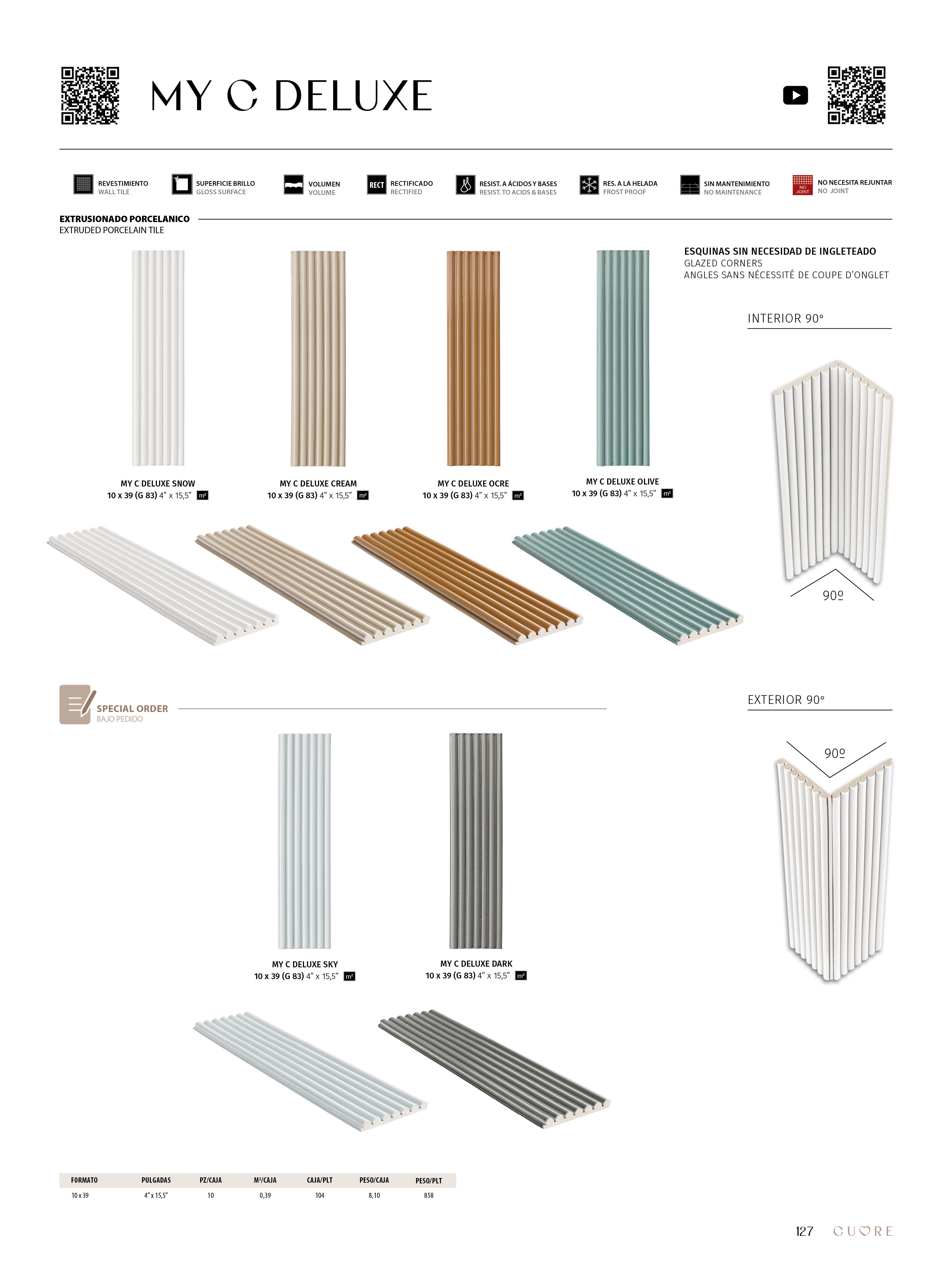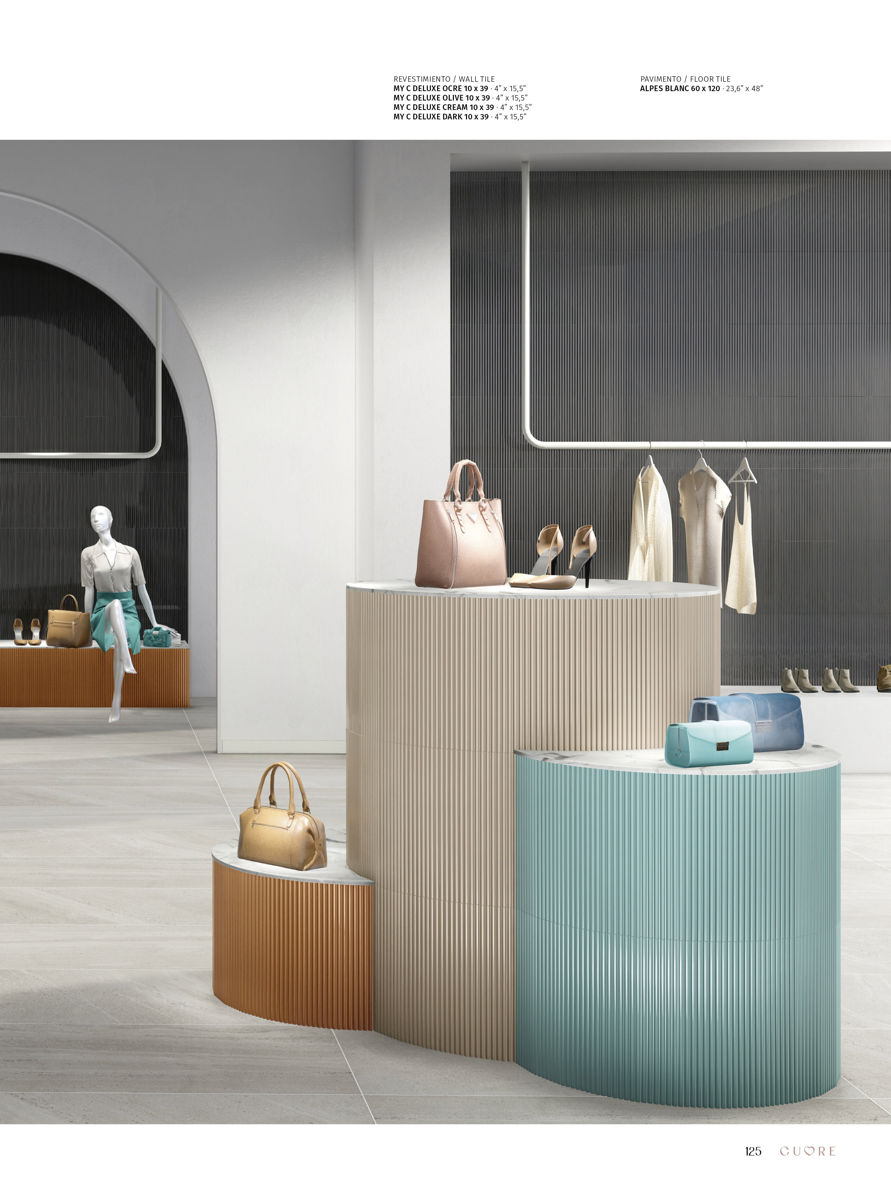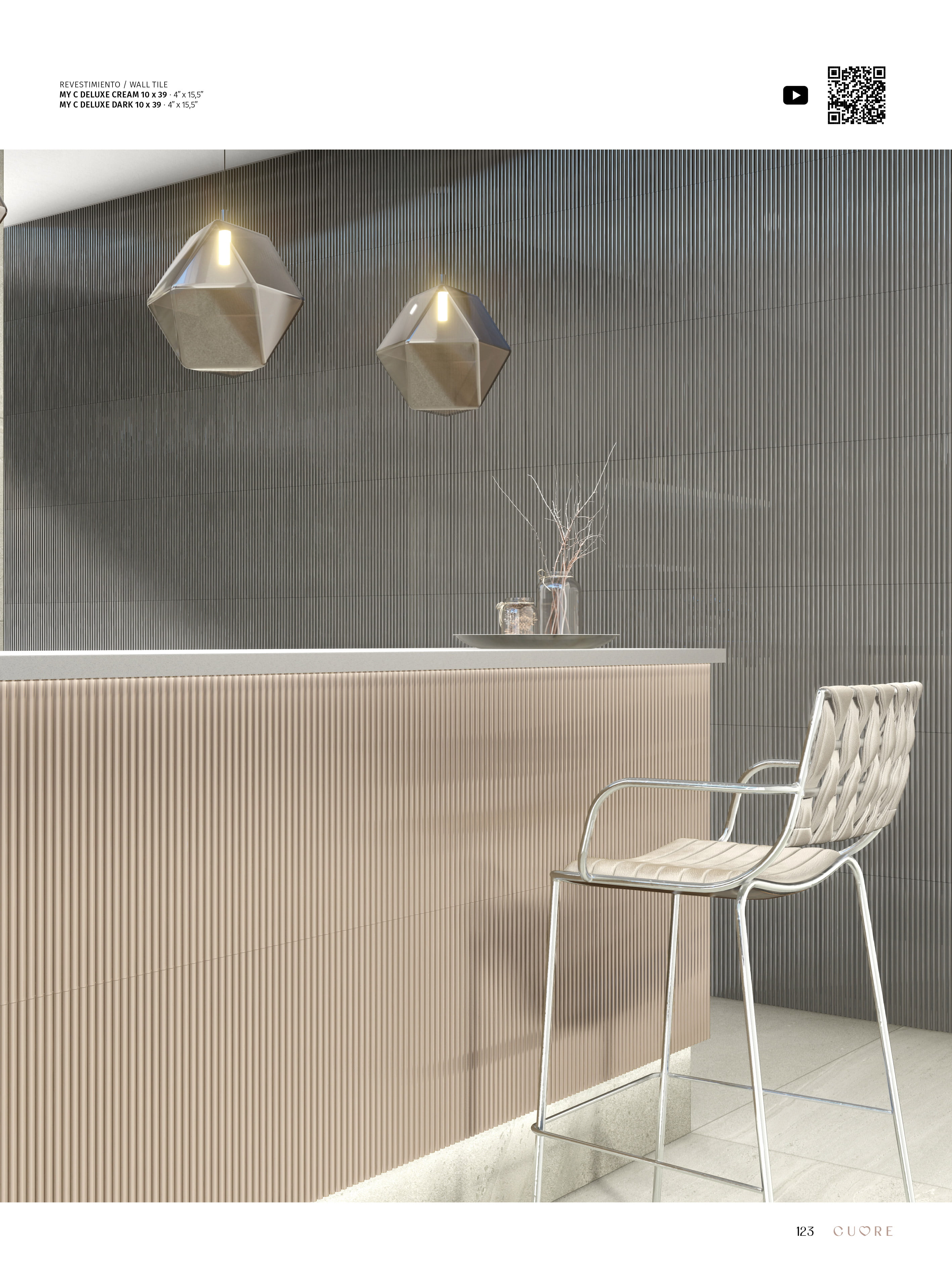 Inspired by the bold trend, the new collection of CUORE by Natucer, My C Deluxe revives the essence of the interior design of the 60’s, making each area a harmonious and cozy place. Its soft curves are delicated and make the contrast with straighter elements making the perfect combination. The 3D look gives a great personality to the tile. As extruded porcelain tile, can be installed indoors and outdoors, and its range of neutral and vibrant colors will adapt perfectly to any space.