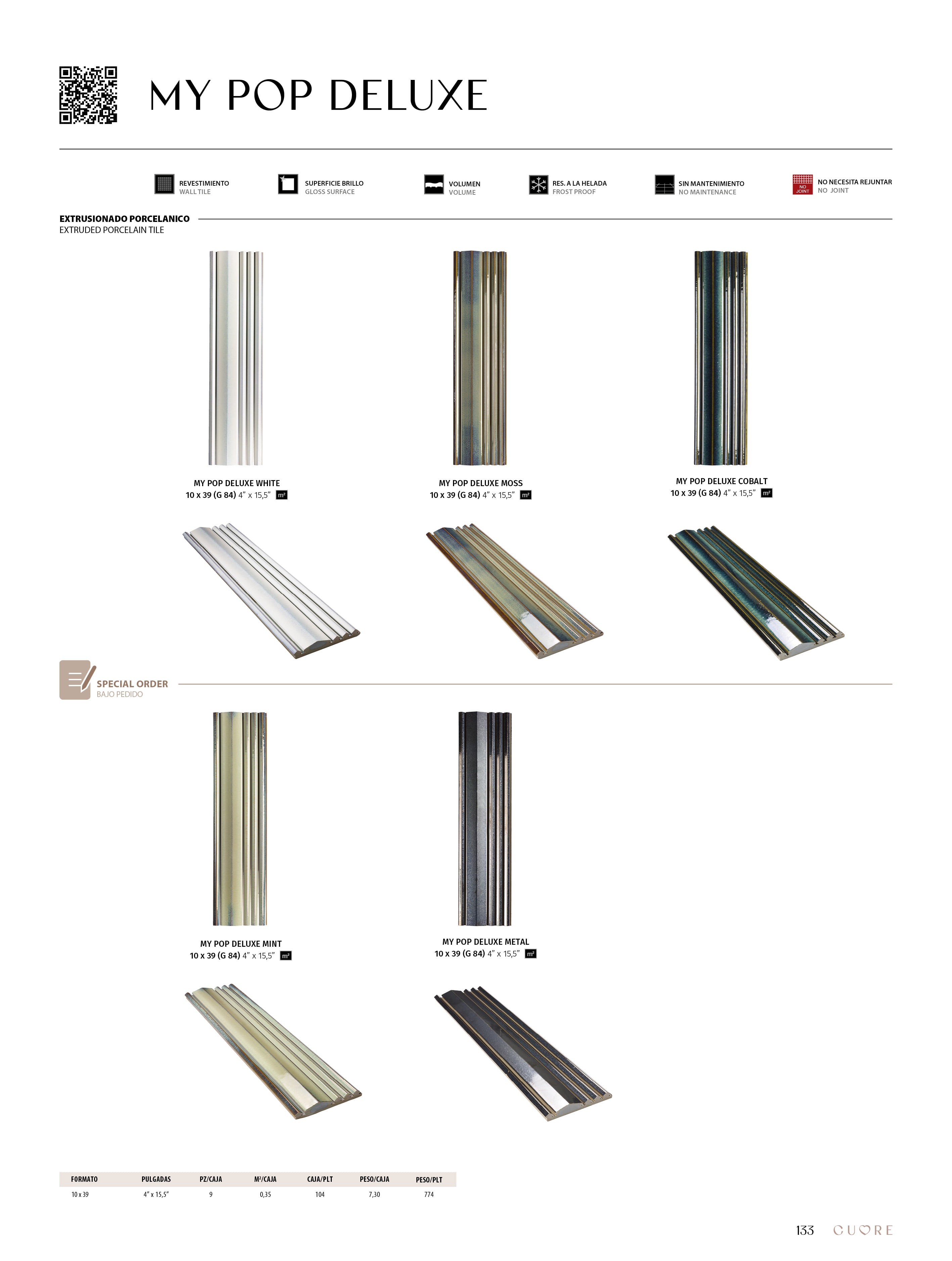 My Pop Deluxe is a burst of color, shine, and volume. This extruded porcelain collection in a unique 4"x15,5" format is designed to turn wall coverings into standout design features.With its glossy surface and 3D-like volumetric effect, it adds personality and movement to any space, playing with light and shadow in an eye-catching way. Available in a wide range of colors to unleash your creativity.