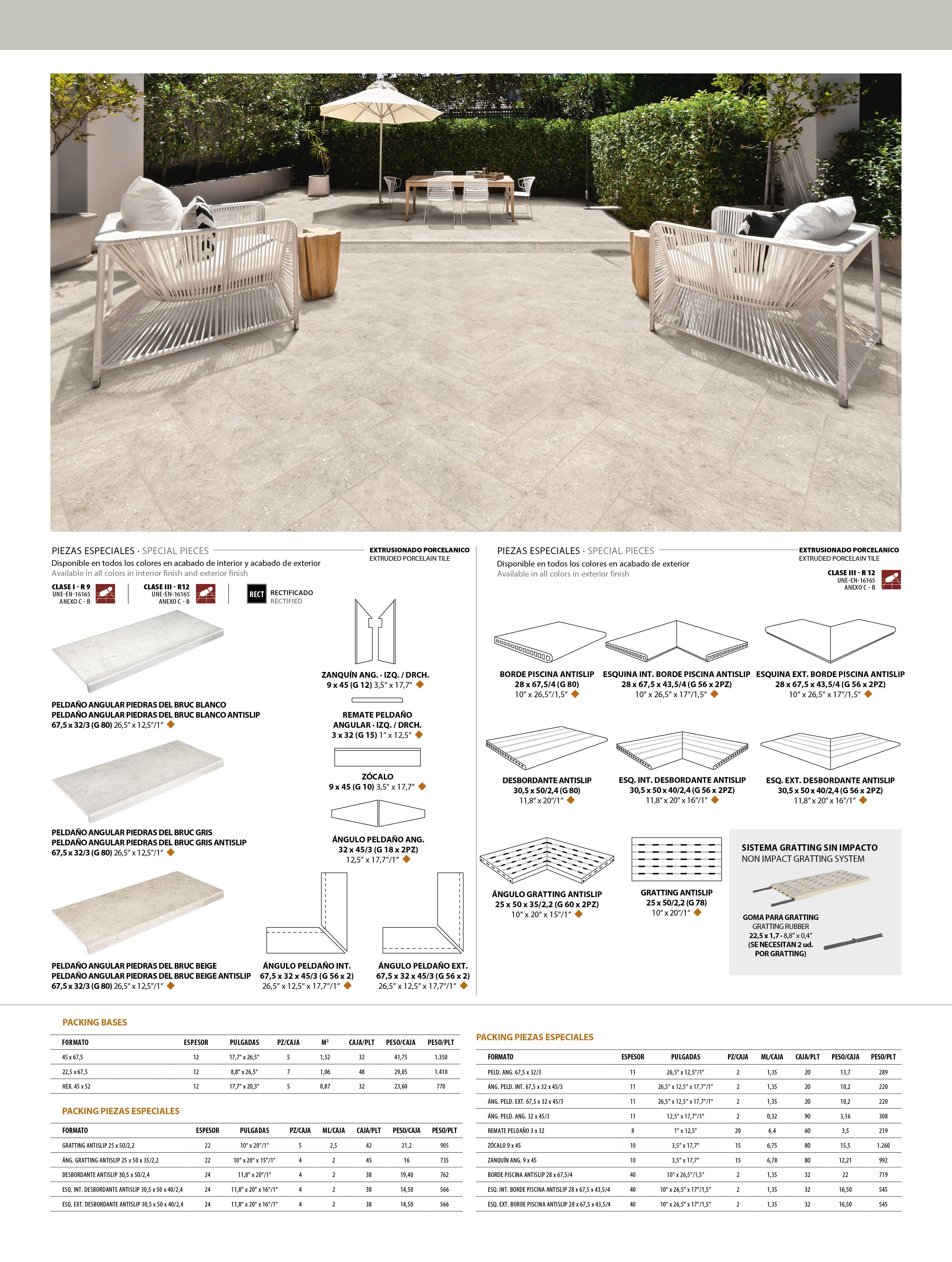 PELDAÑO ANGULAR ZANQUÍN REMATE PELDAÑO ANGULAR IZQ./DRCH. ZÓCALO ÁNGULO PELDAÑO ANG. ÁNGULO PELDAÑO INT. ÁNGULO PELDAÑO EXT. BORDE PISCINA ANTISLIP ESQUINA INT. BORDE PISCINA ANTISLIP ESQUINA EXT. BORDE PISCINA DESBORDANTE ANTISLIP ESQ. INT. DESBORDANTE ANTISLIP ESQ. EXT. DESBORDANTE ANTISLIP GRATTING ANTISLIP ÁNGULO GRATTING ANTISLIP INT./EXT. GOMA PARA GRATTING |