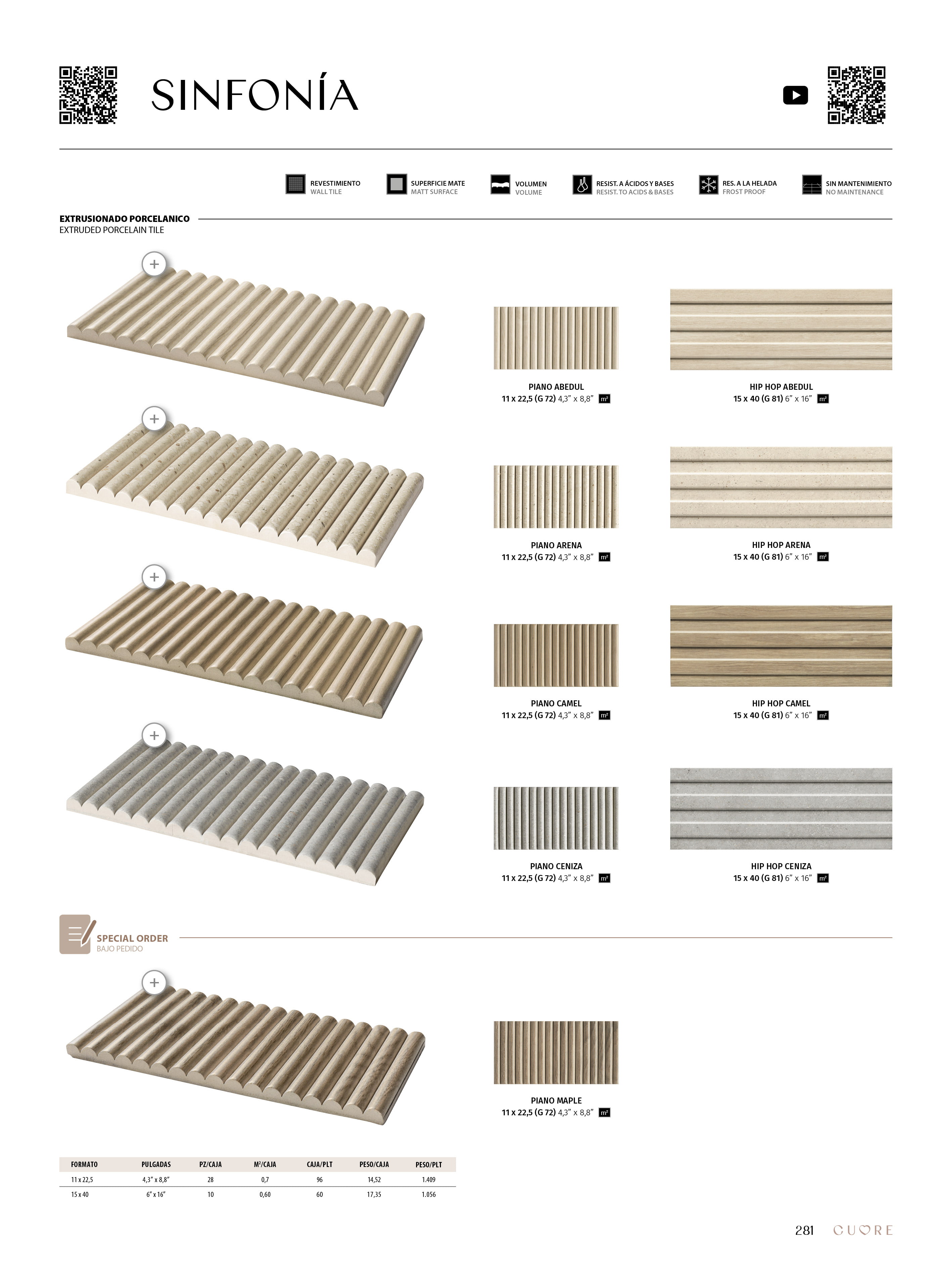 Inspired by wood and natural stone, the Sinfonia series presents a unique texture in each of its pieces. With its three-dimensional volume you can look for the desired light intensity and give a volumetric decoration to your home to match the pavement. With 6 colors, 2 heights and 5 different formats presented in the collection, you will find the aesthetics you need.
