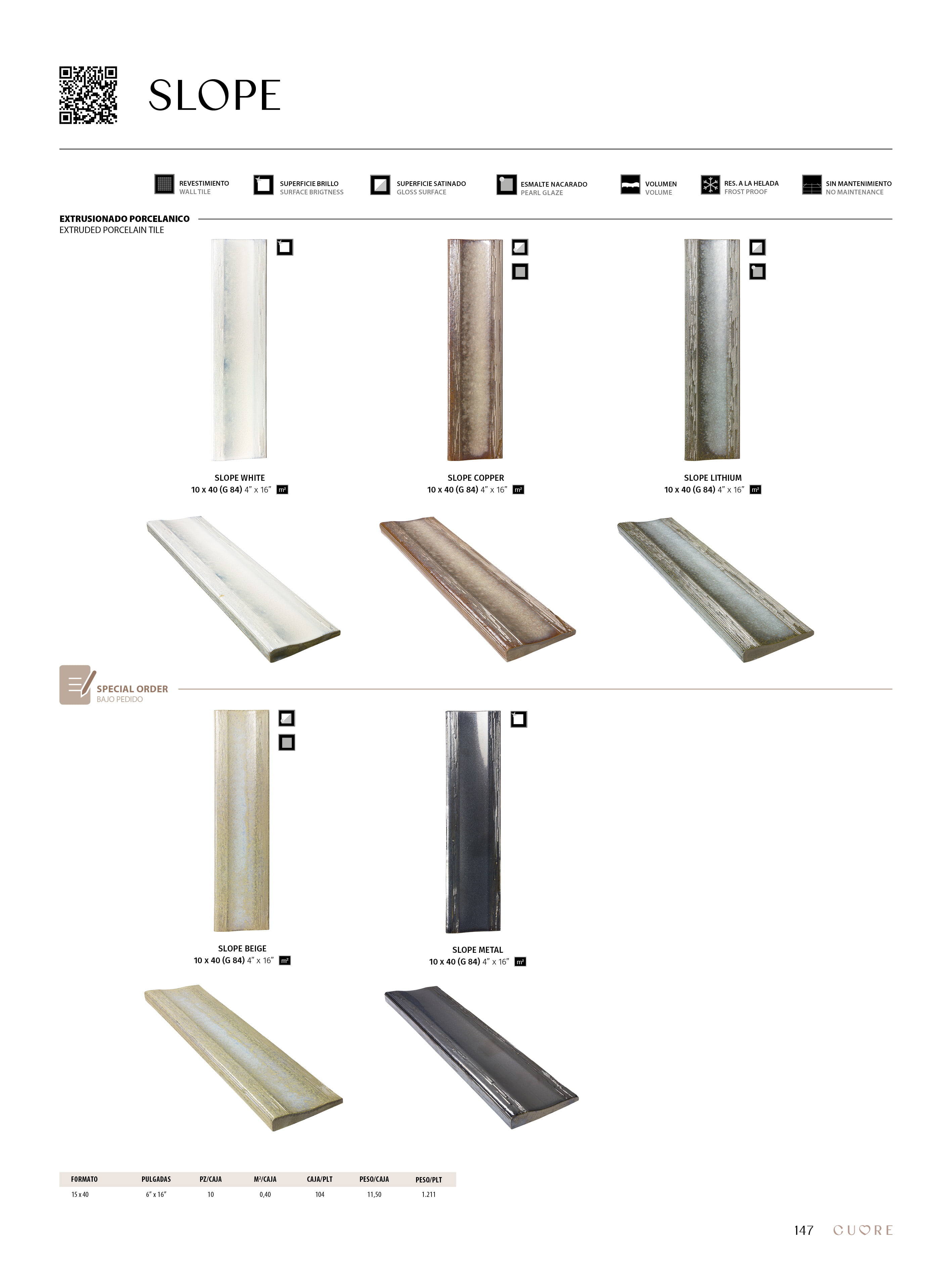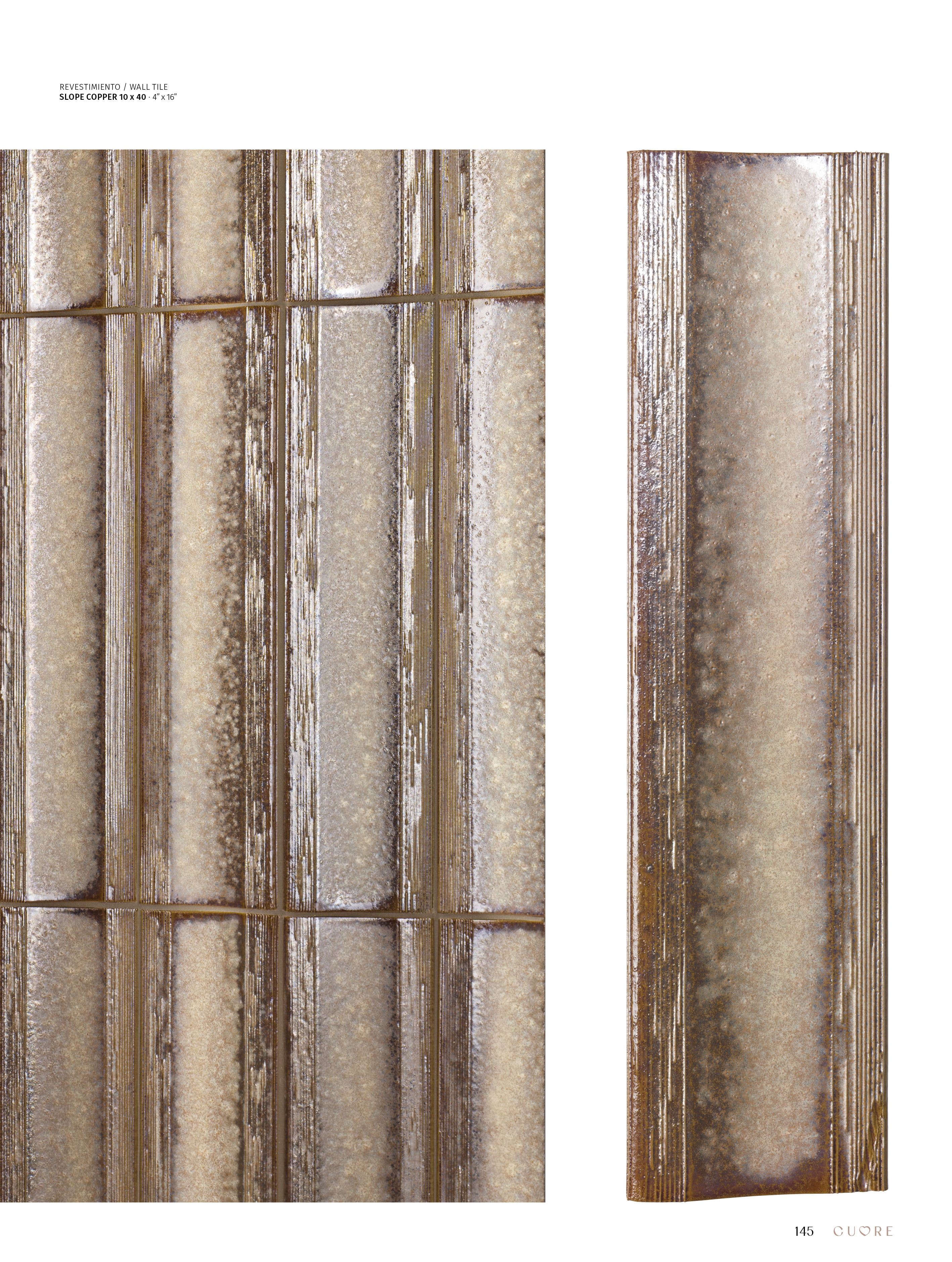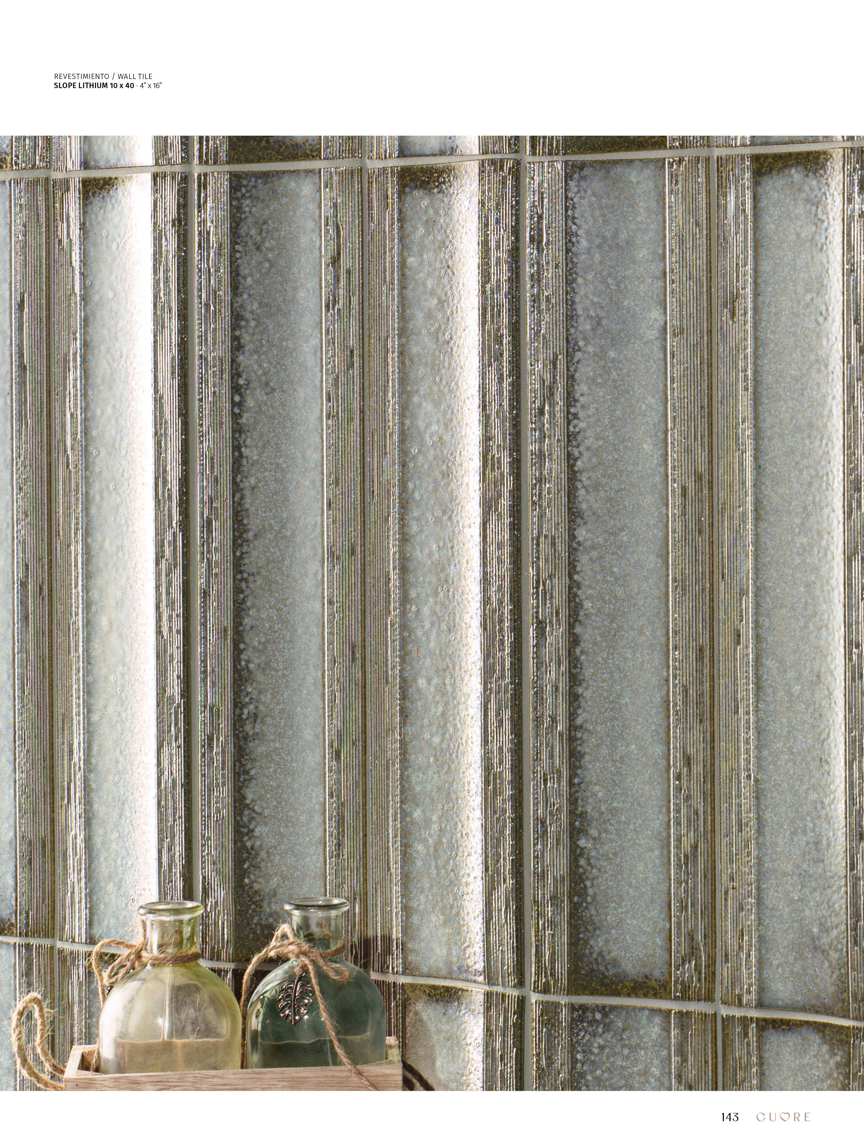 SLOPE is an extruded porcelain collection that stands out for its exclusive relief, playing with volumes and depths to create a dynamic visual effect. Its reactive glazing provides a unique chromatic richness, with subtle variations depending on light and perspective. The combination of a glossy finish and wavy texture makes it a sophisticated choice for cladding, offering an artisanal aesthetic.