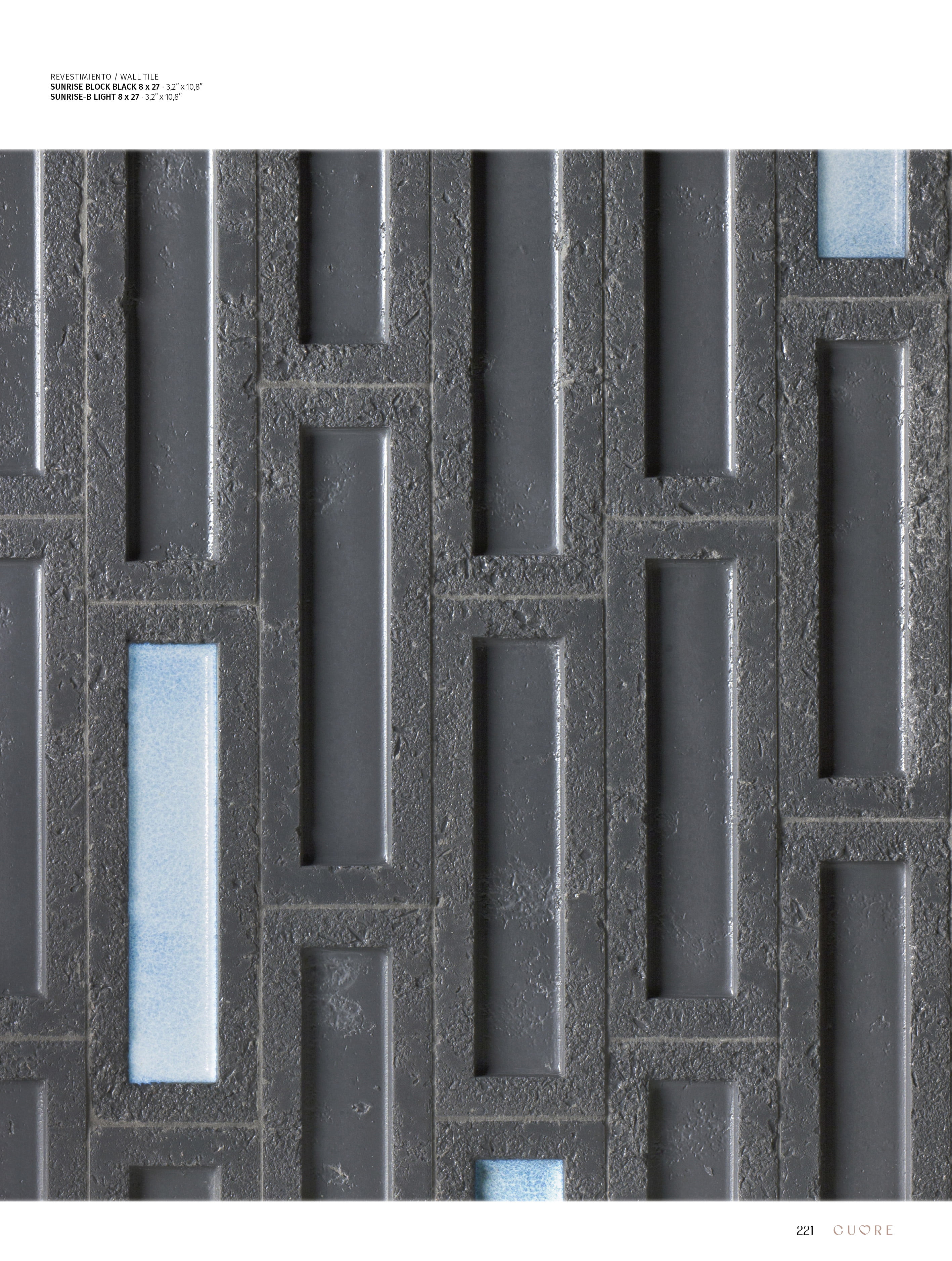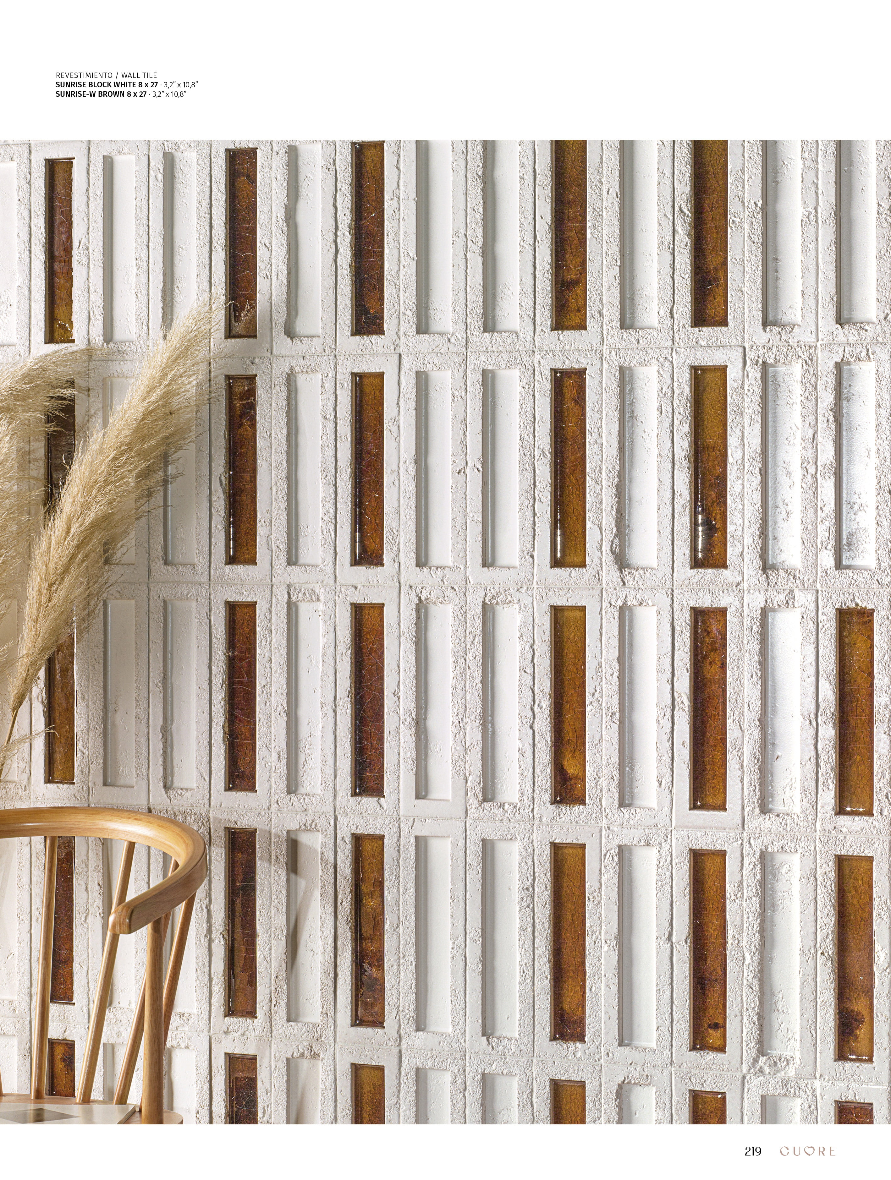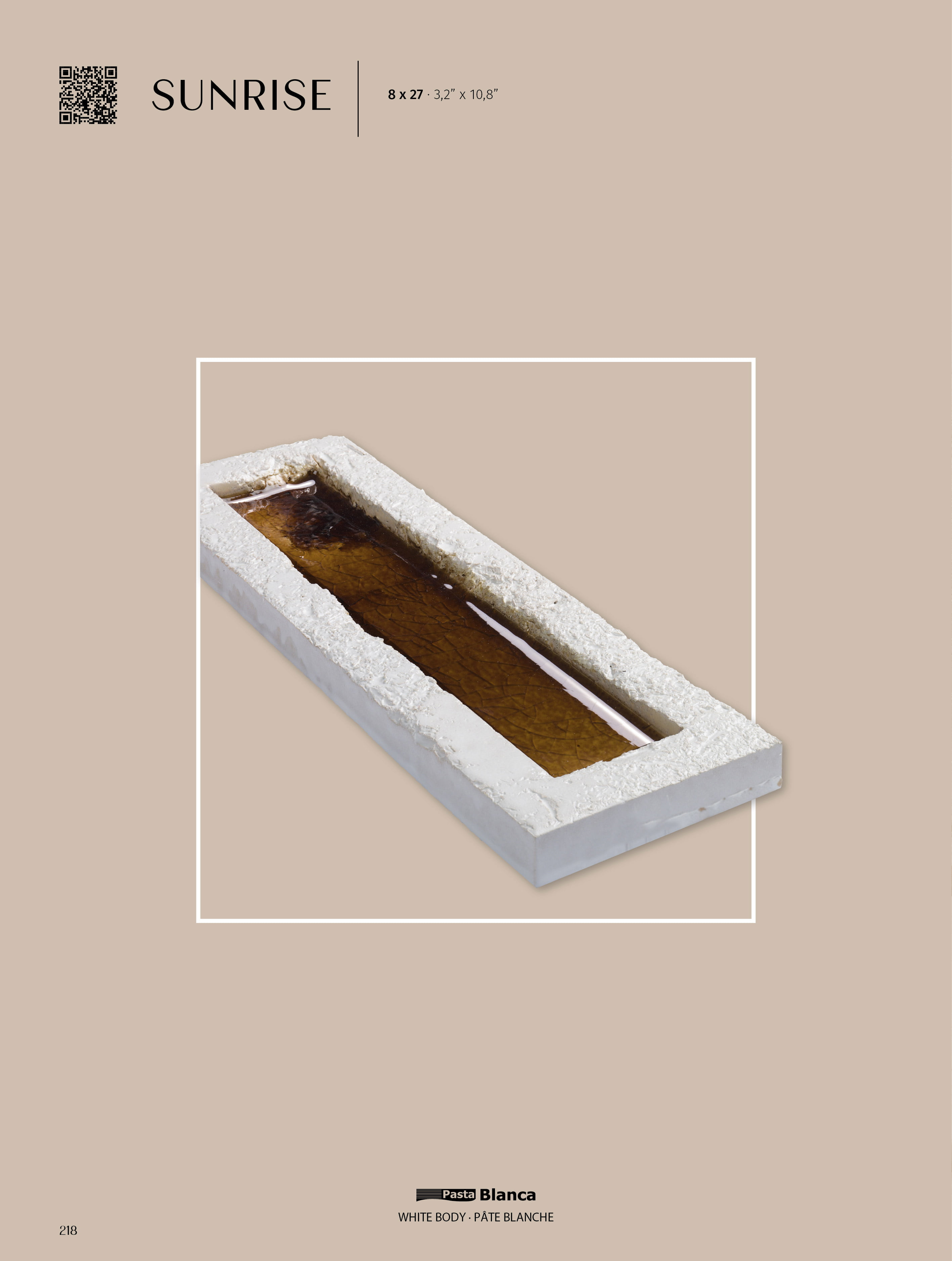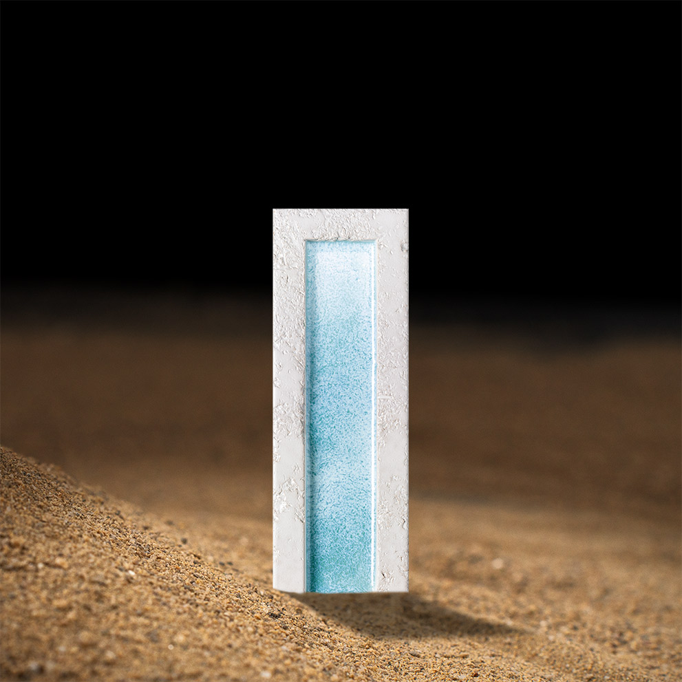 SUNRISE is a stunning small-format collection that stands out for its artisanal character and striking aesthetics. At its center, a rectangular cavity houses a glossy finish with vibrant colors, creating a fascinating contrast with the matte, rustic base. The glaze, with its deep, glassy appearance, evokes the texture and shine of molten caramel, adding an appealing and dynamic visual effect that shifts with light and perspective