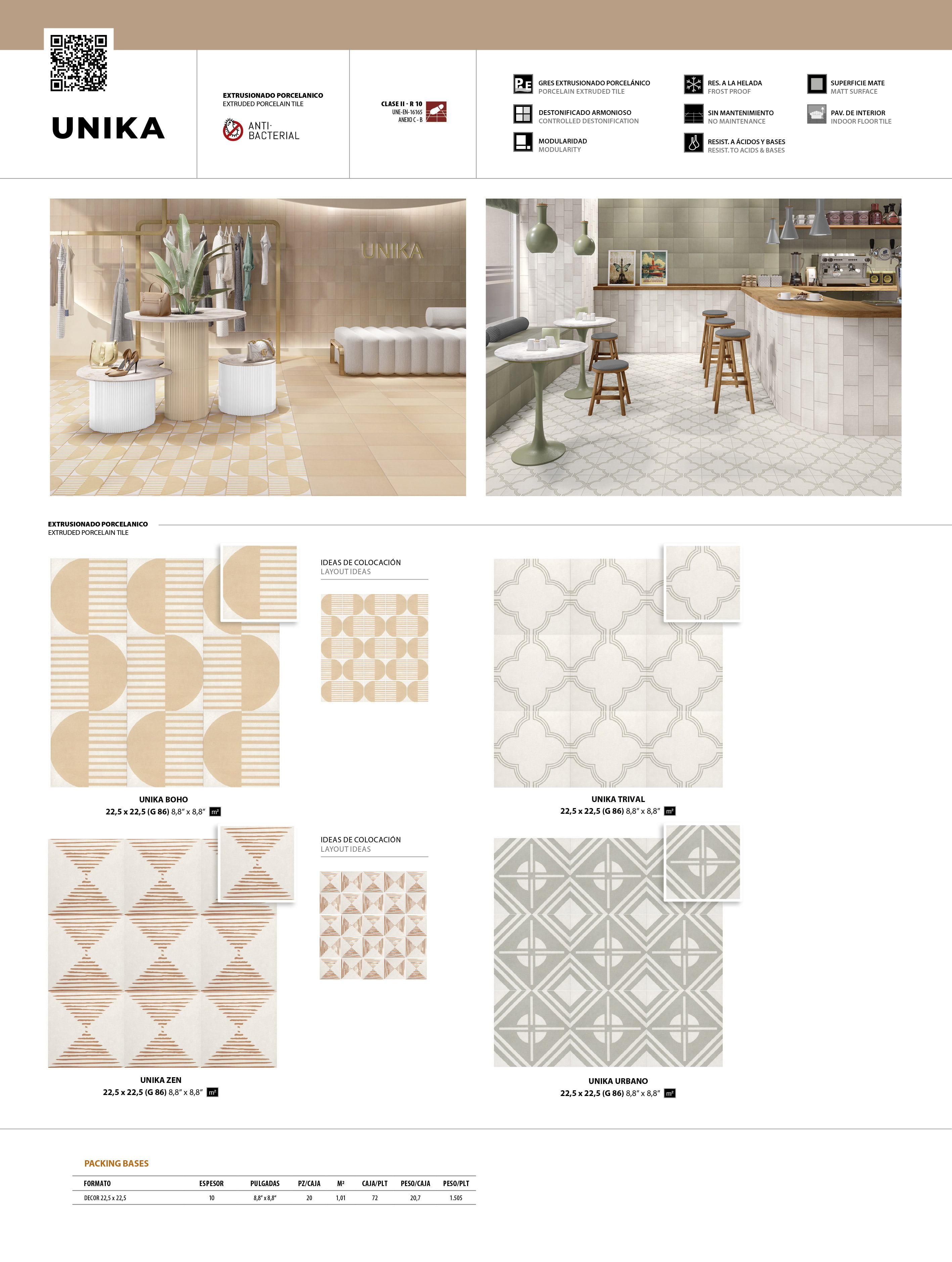 UNIKA BOHO 22,5x22,5 · 8,8''x8,8'' · UNIKA TOPO 22,5x45 · 8,8''x17,7'' · UNIKA TOPO 11x22,5 · 4,3''x8,8''