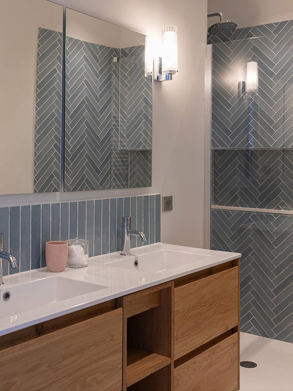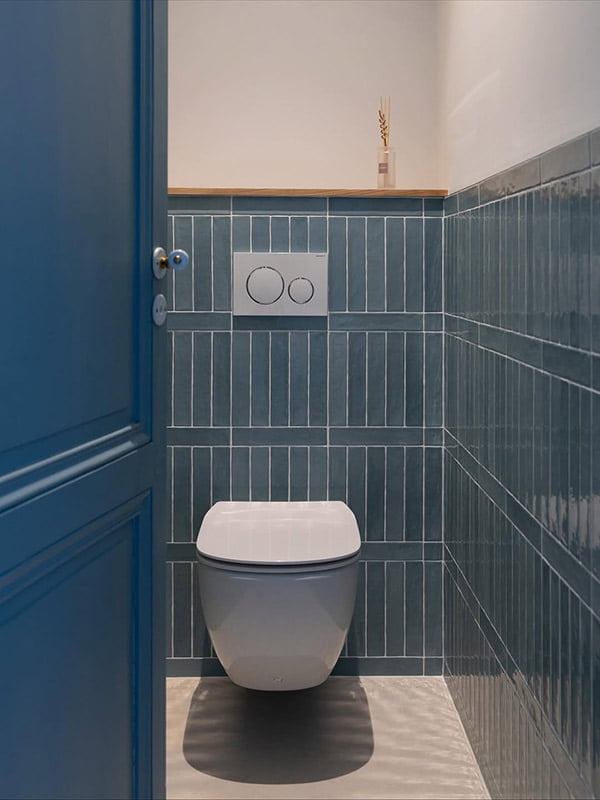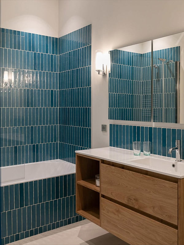 The Piastrella Mix series, in Acqua and Turchese colors, brings freshness, brightness, and a Mediterranean feel that enhances the château's original charm.