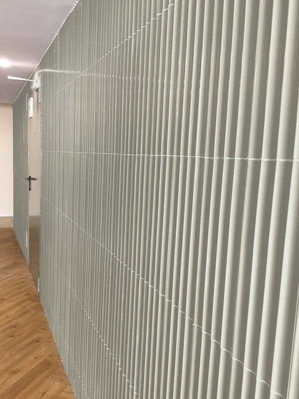 The Tango series, in its Kale shade, transforms this façade into a vibrant surface full of personality. Its extruded pieces, with 3D volume, create a play of light and shadow that adds rhythm, movement, and a very distinctive architectural identity.