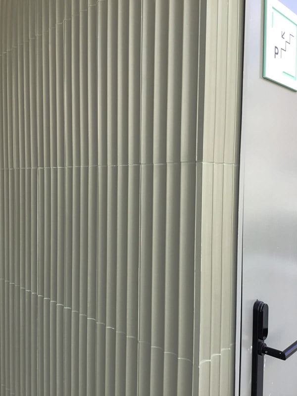 The Kale color, with its intense and natural green hue, adds freshness and a contemporary aesthetic to the building, enhancing the geometry of the design and heightening the perception of depth. A ceramic solution that turns the wall into a canvas full of character, texture, and style.