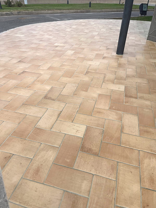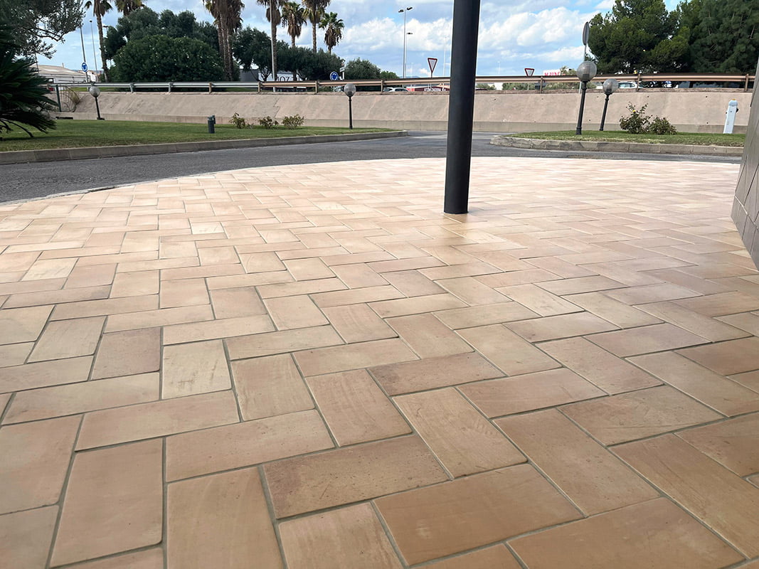 We love the result of the entrance of this building, where we have used the Fuego collection in 6"x11,8" format, one of our most outstanding extruded porcelain tiles for its great adaptability for all types of floor and wall tiles, both indoors and outdoors.