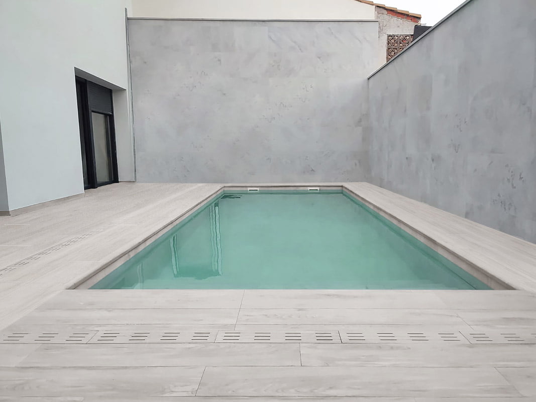 Nos encanta la estética contemporánea y orgánica que define a la colección porcelánica antislip Natura, la cual ha sido fundamental en la creación de este encantador proyecto de piscina residencial. Su estilo distintivo y sofisticado, que destaca por su textura basada en la madera, transmite matices de nobleza y elegancia de manera excepcional, cualidades especialmente adecuadas para espacios exteriores, como terrazas, piscinas y jardines, donde la resistencia y durabilidad del material son de vital importancia.