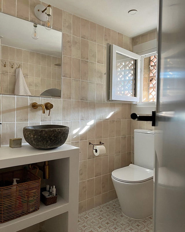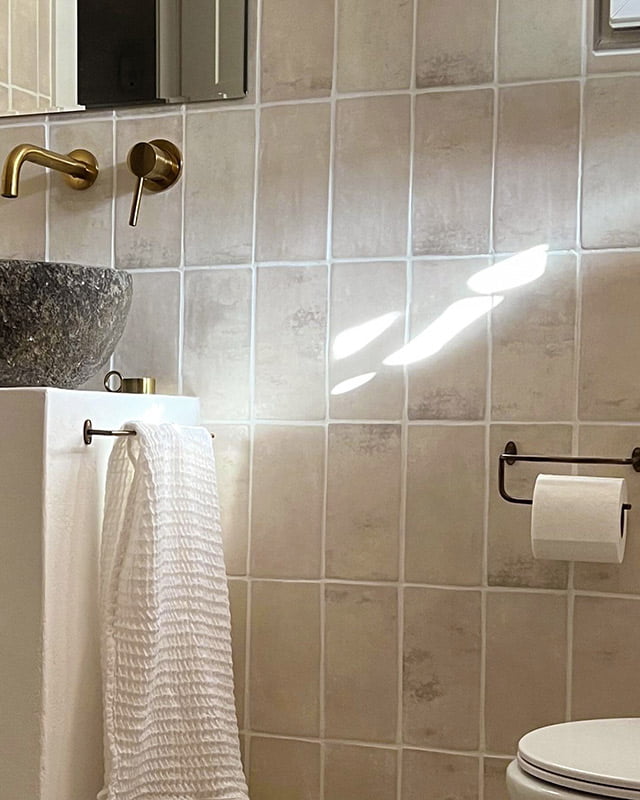 Nos encanta cómo @miespacioparasonyar ha transformado este espacio de baño en un rincón de relax y estilo, utilizando nuestra colección Malta en color Taupe (10x20cm) para las paredes.