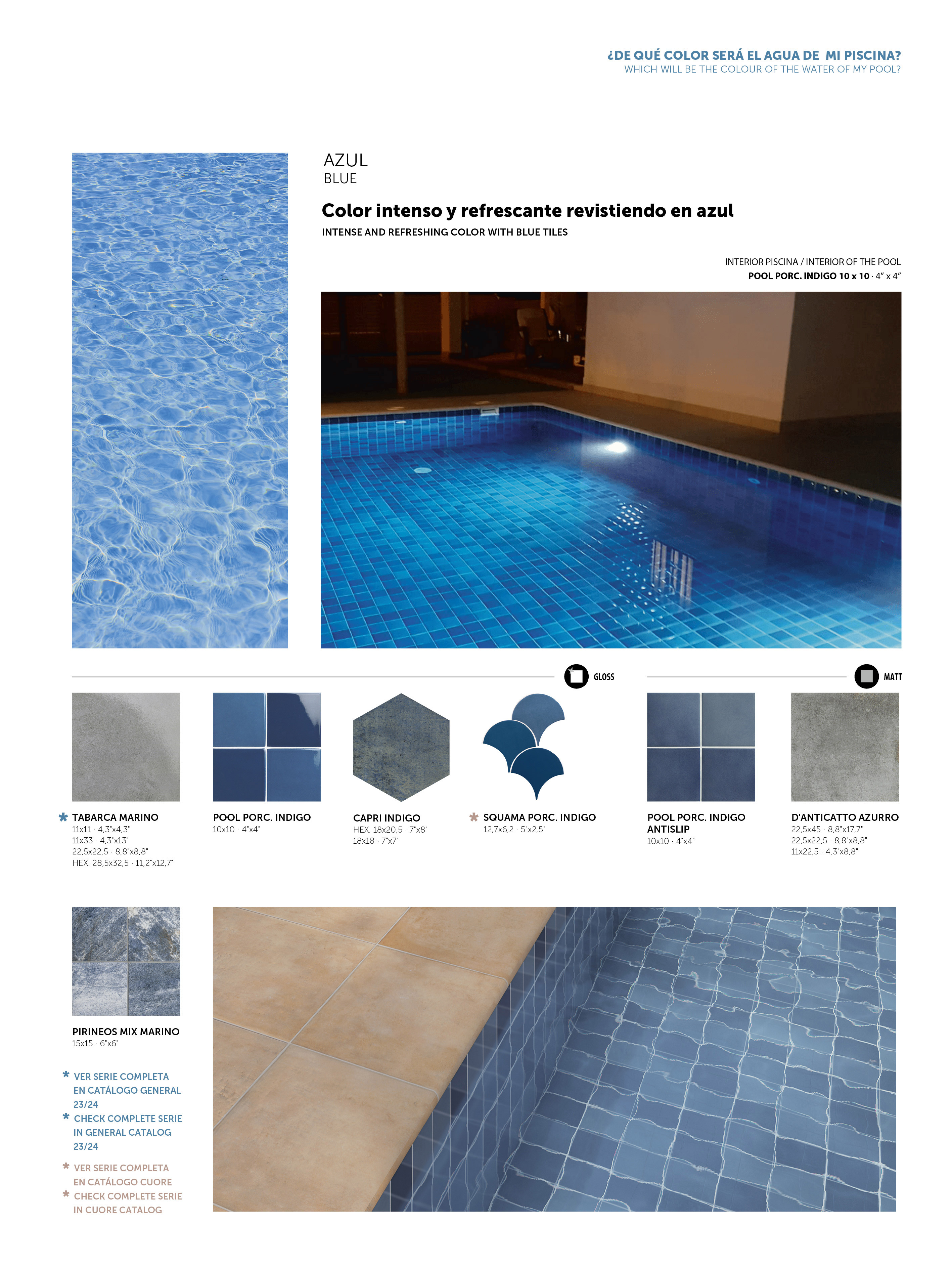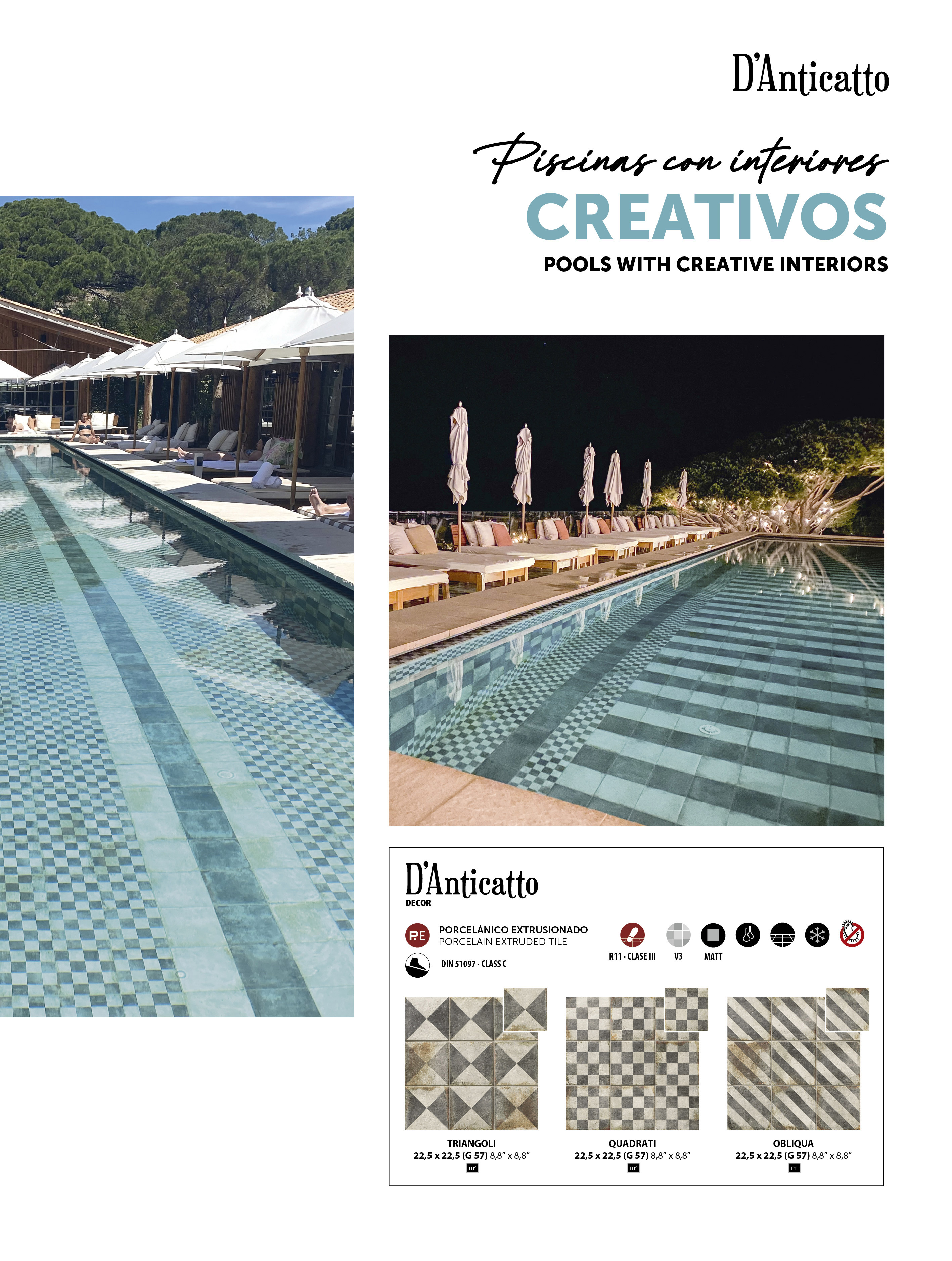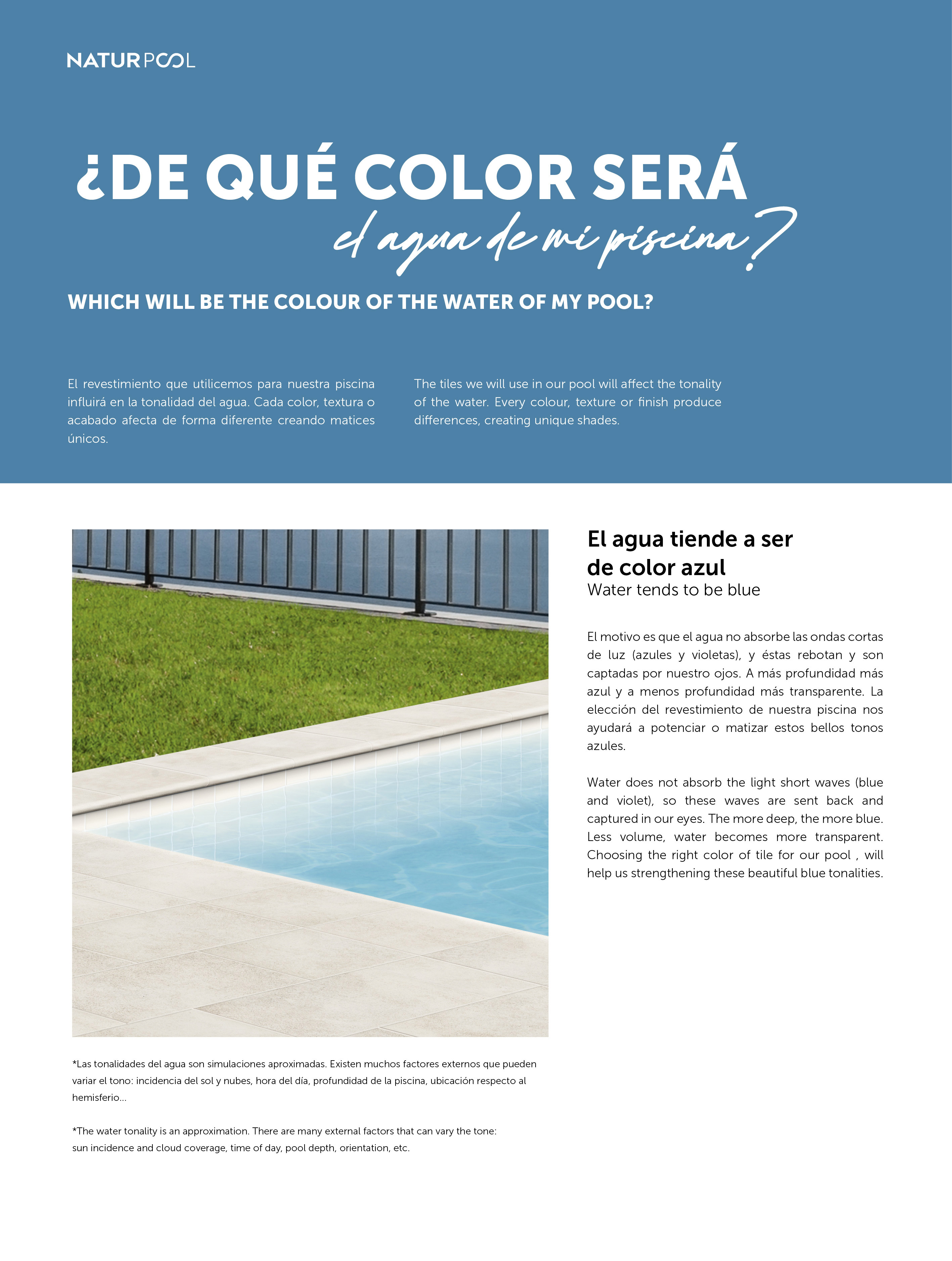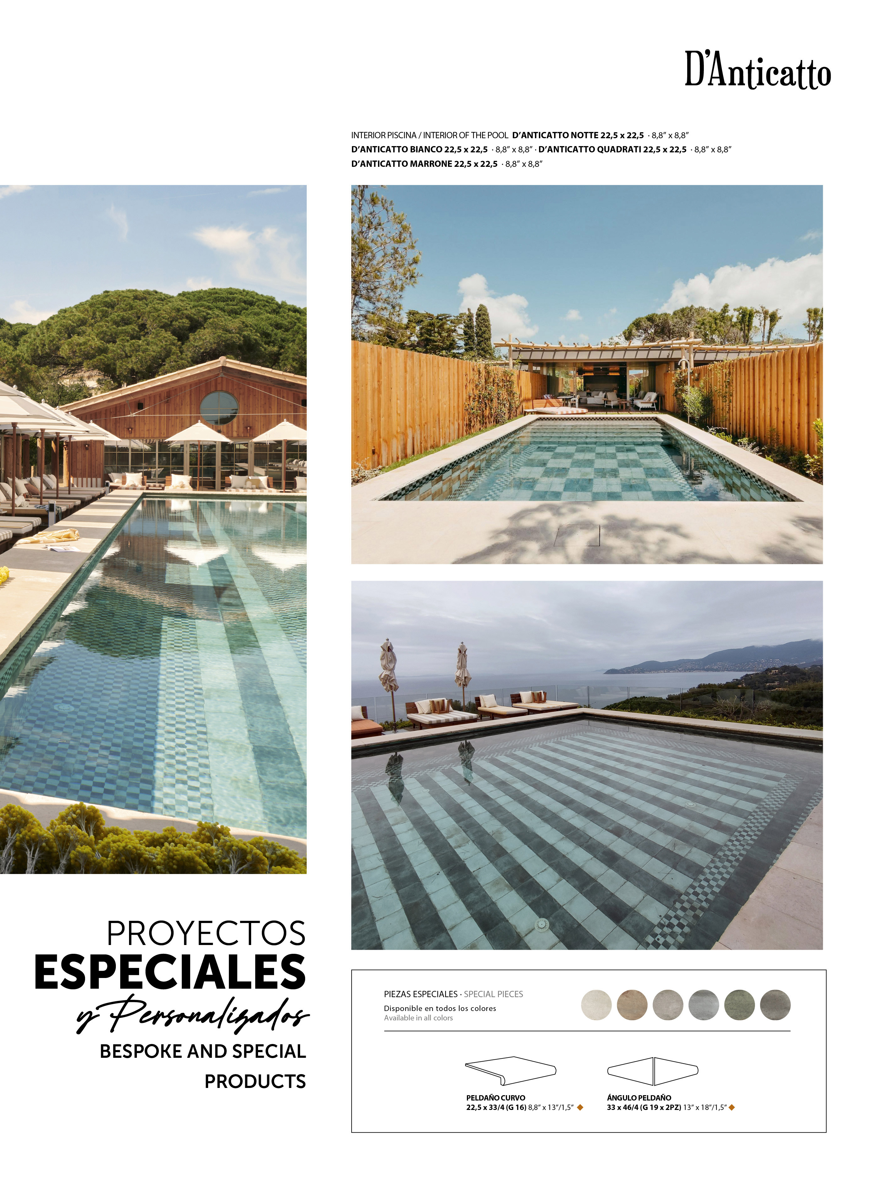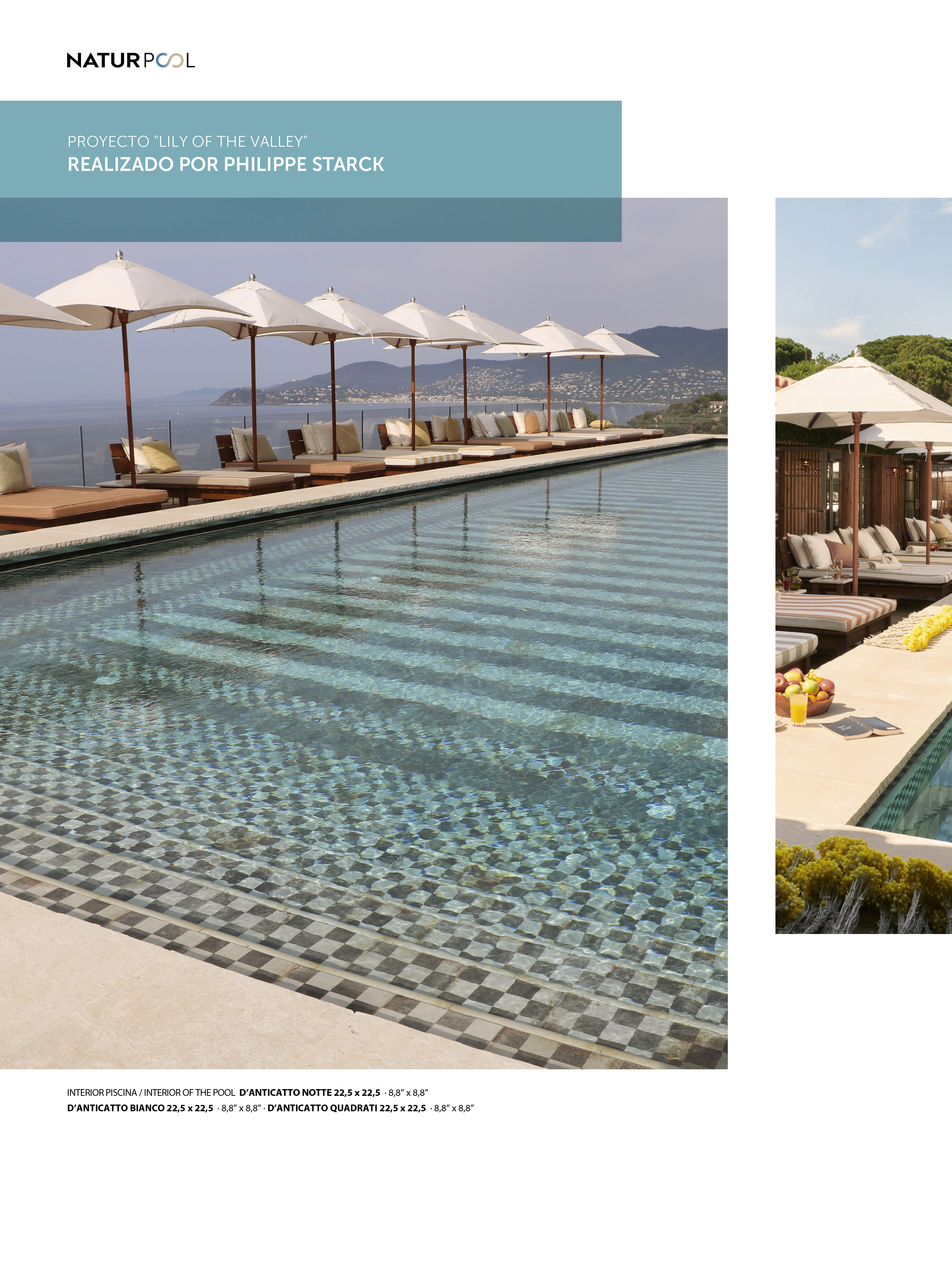 Las piscinas desbordantes son aquellas en las que la lámina de agua rebosa por encima de los niveles del borde, creando así un efecto visual impactante a modo de laguna. Su canalización de desagüe se realiza en la superficie de la playa a través de un gratting de características especiales. Este sistema permite una constante renovación del agua de la piscina.