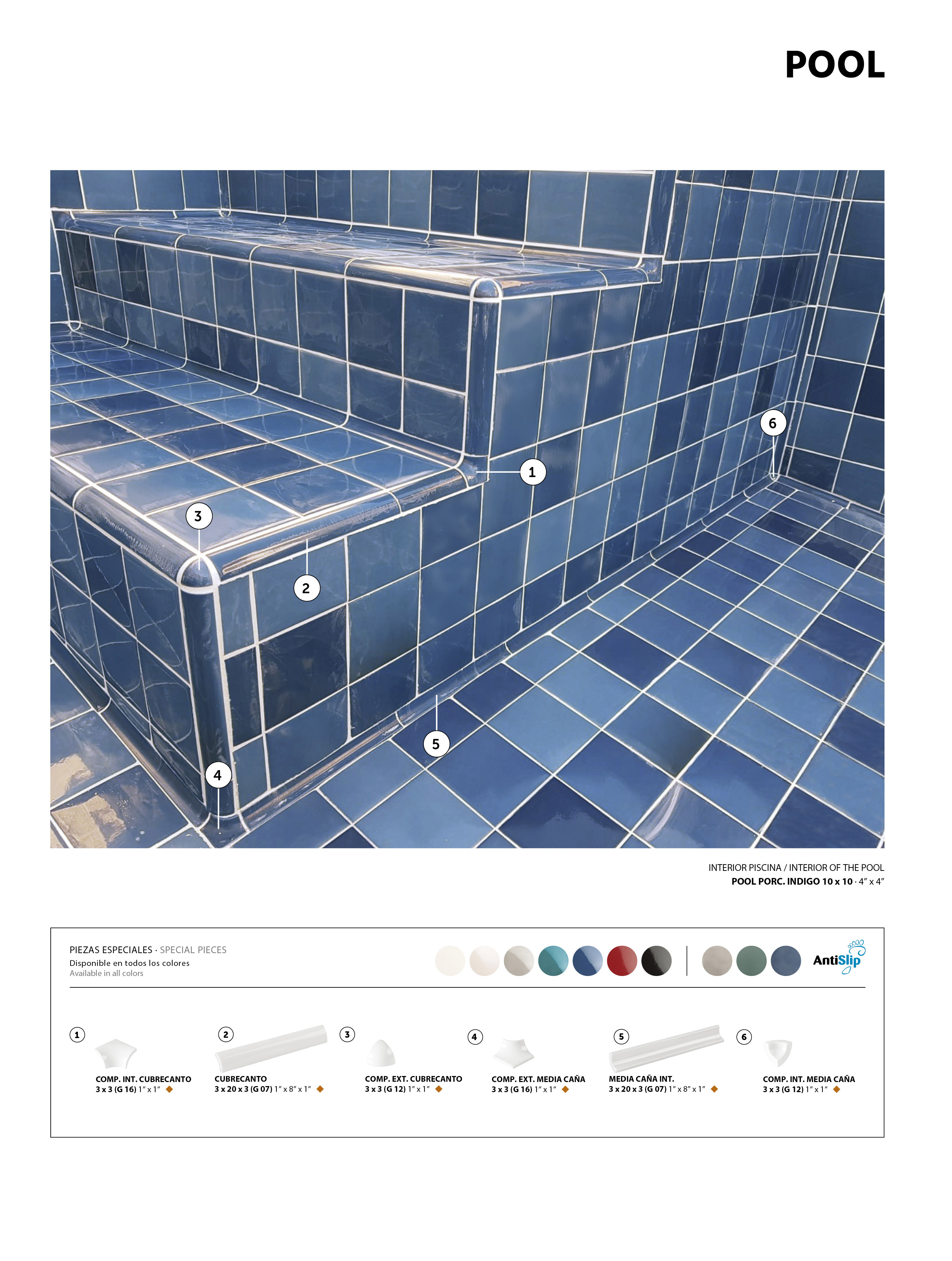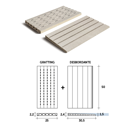 Para conseguir el efecto desbordante se debe instalar una canaleta de filtrado por todo el perímetro de la piscina por dónde el agua entrará de forma constante. Esta canaleta se cubre con nuestras rejillas cerámicas. |
