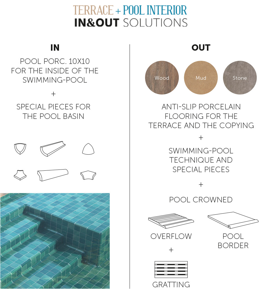 Naturpool offers integral solutions for swimming-pools. 2 concepts differentiated indoor and outdoor (IN & OUT). 100% safe and custom pools becoming an aesthetic extension of the terrace, creating completely homogeneous and integrated outdoor areas.