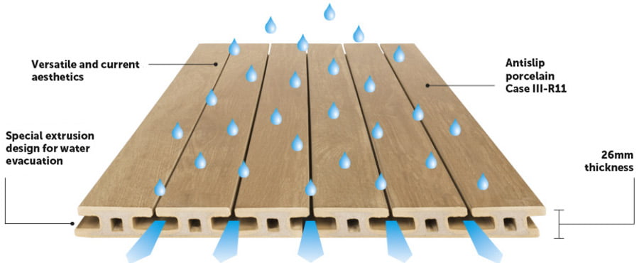 What if I want a perfect draining terrace but with that warm touch that only the appearance of wood can give?