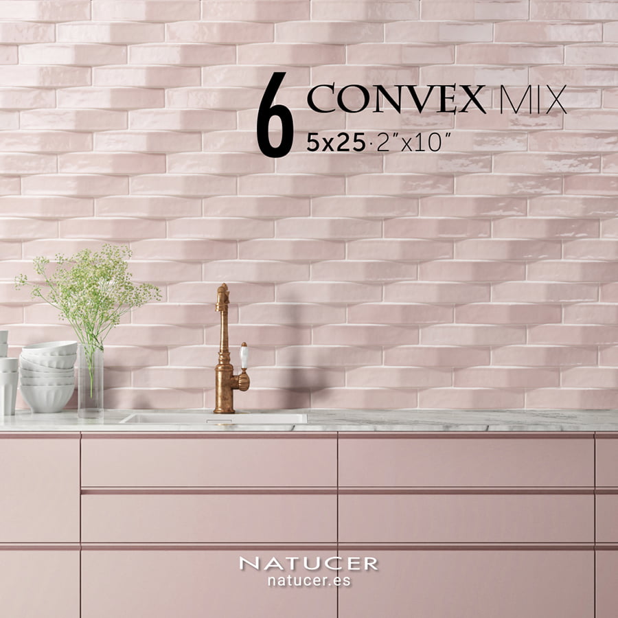 Convex Mix has a color shade variation that mixes with its 3D effect creating an effect that plays with the lights and shadows. Glazed in all sides.