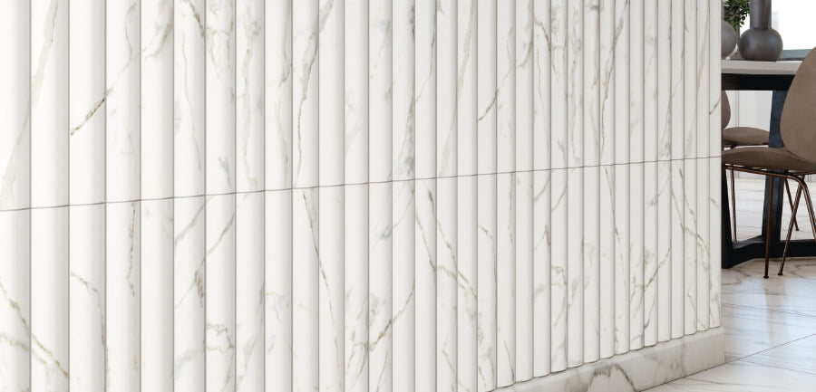 Los diseños en 3 dimensiones más atrevidos e innovadores se hacen posibles gracias al poder de la extrusión, la única técnica que permite alcanzar cotas de pendiente o alturas tan pronunciadas en cerámica. Esta potente técnica hace posible crear revestimientos cerámicos de geometrías y volúmenes imposibles en otro tipo de materiales, además de garantizar una calidad superior en cuanto a características técnicas.