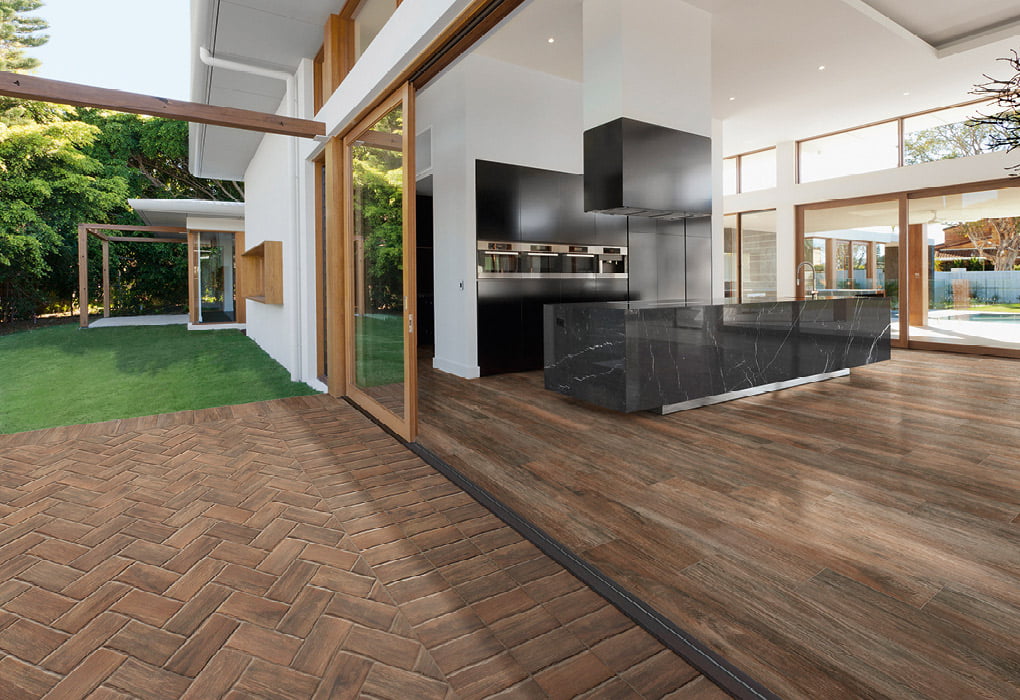Un nuevo formato más grande para crear un espacio extradimensional. Los horizontes se multiplican y los proyectos adquieren nuevas perspectivas. 20×120 en acabado Natural o Antideslizante, lo que permite trasladar la atmósfera natural de la madera también al exterior.