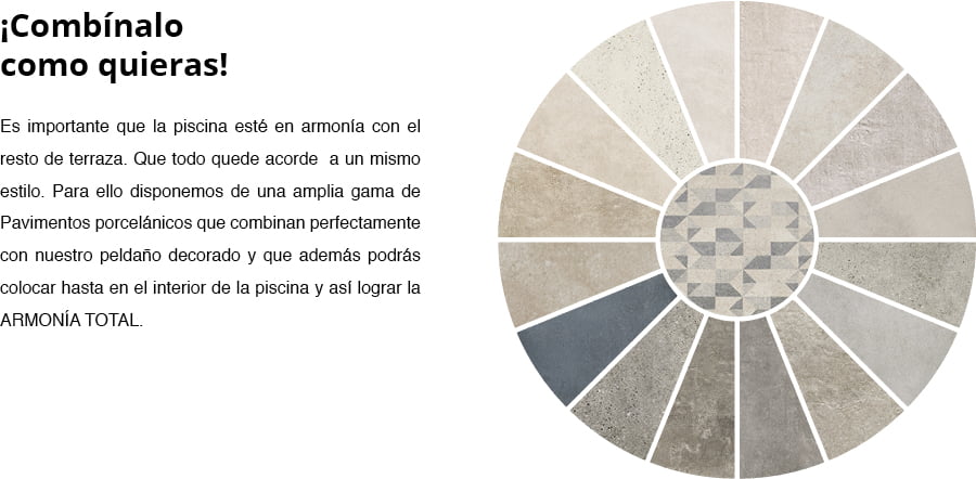 Para las piscinas más atrevidas recomendamos VERSA-TILES (decor step 120).