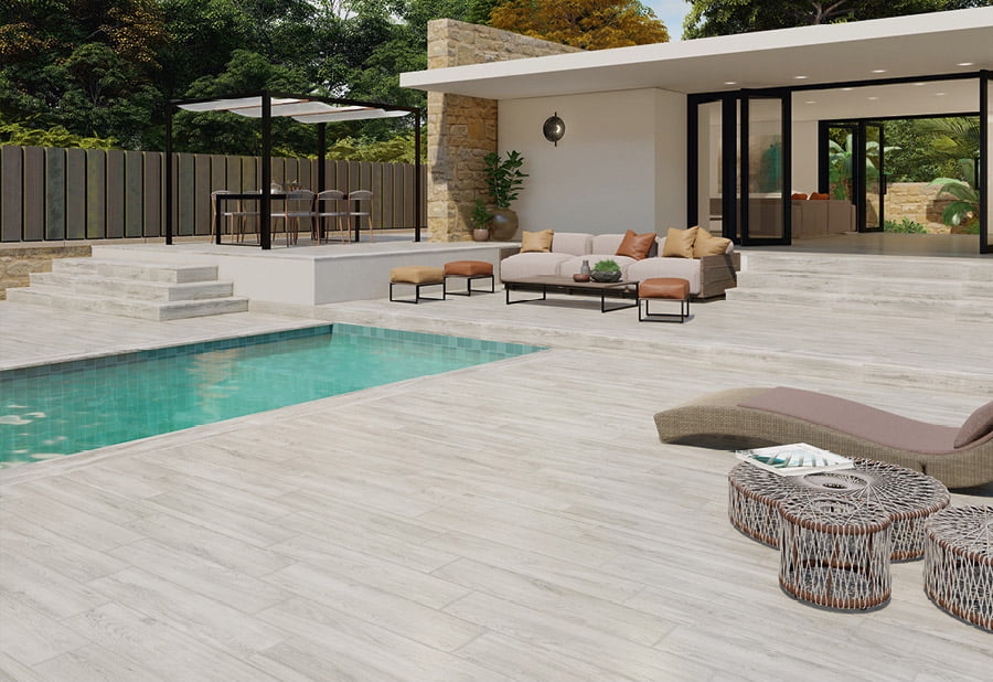 Para los que quieren que su terraza conecte directamente con la naturaleza. Una recreación perfecta de la MADERA más cálida y natural pero con todas las propiedades del porcelánico. Hará que tu piscina se integre con el paisaje que la rodea y quede espectacular.
